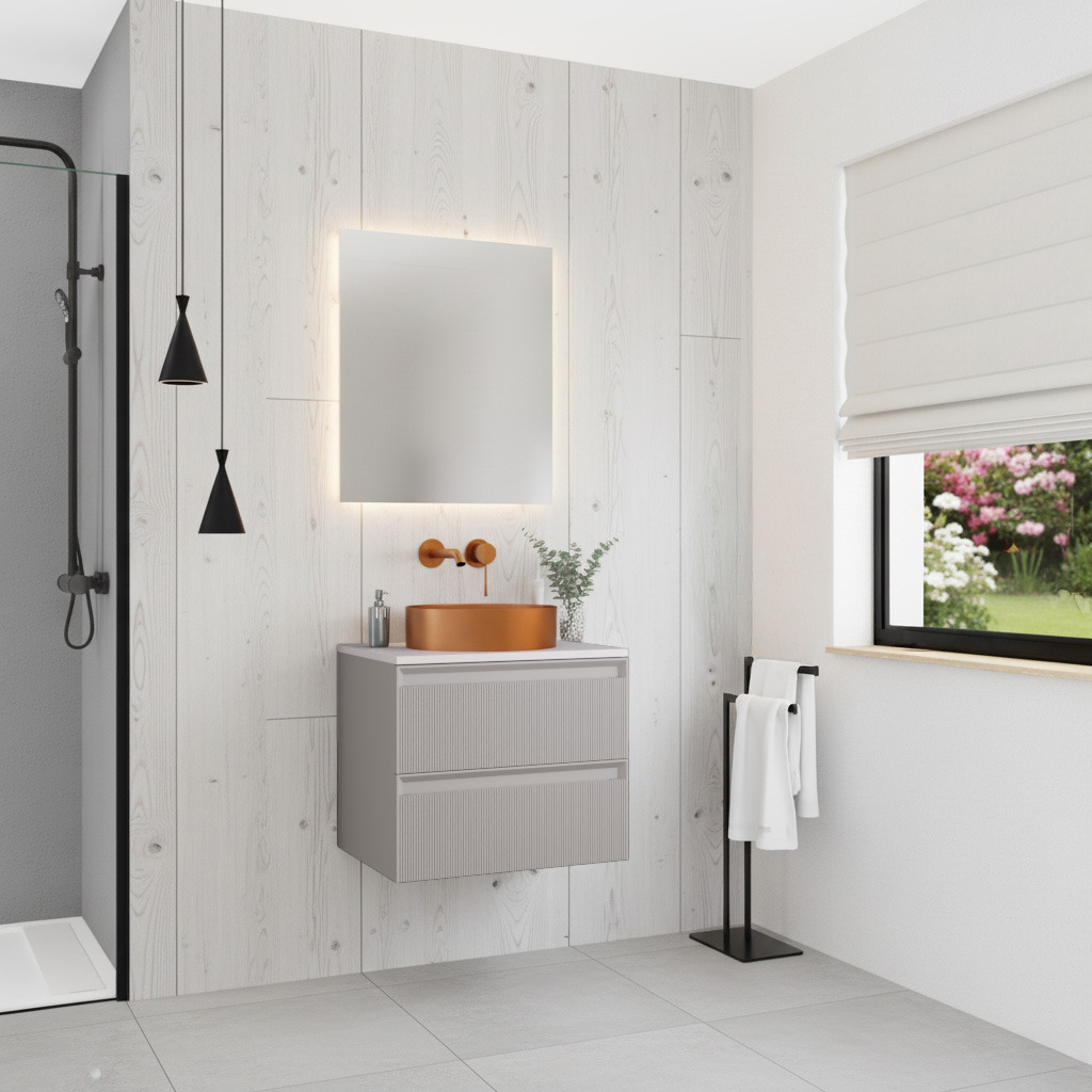 Nouveau meuble de salle de bain 60 cm, gris perle (CERAMIA-3LG60)