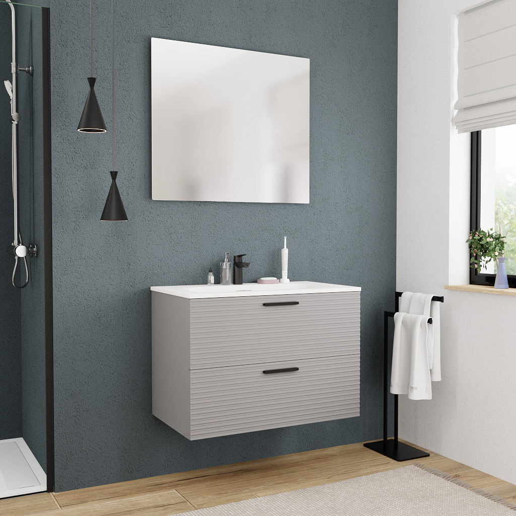 80 cm, meuble de salle de bain assemblé, gris perle (CERAMIA-4LG80)
