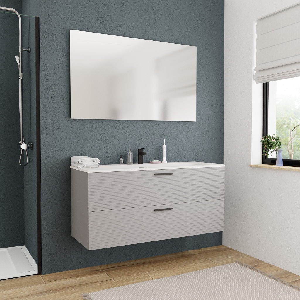 - Nom du produit : Meuble de salle de bain Ceramia Gris Perle – 120 cm