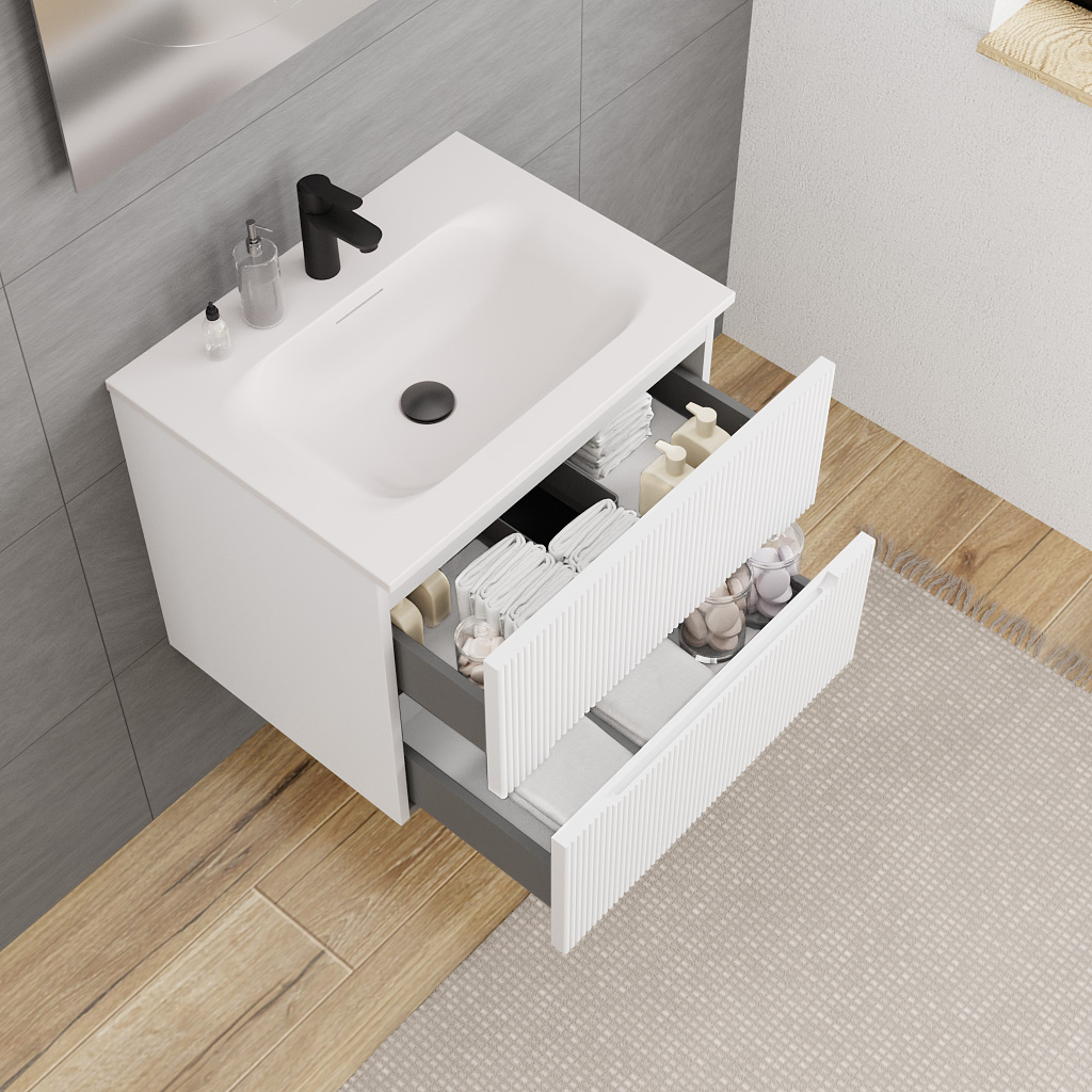 Il se distingue par sa robustesse, sa résistance à l’humidité et son engagement écologique. Son tiroir à fermeture soft-close, équipé d’une découpe en U pour le passage du siphon, offre un rangement pratique et silencieux. Livré entièrement monté, ce meuble est prêt à être posé en toute simplicité, même dans les configurations les plus compactes. Fonctionnel, esthétique et durable, le Ceramia 60 cm est le choix idéal pour aménager intelligemment une salle de bain réduite tout en conservant une qualité haut de gamme.