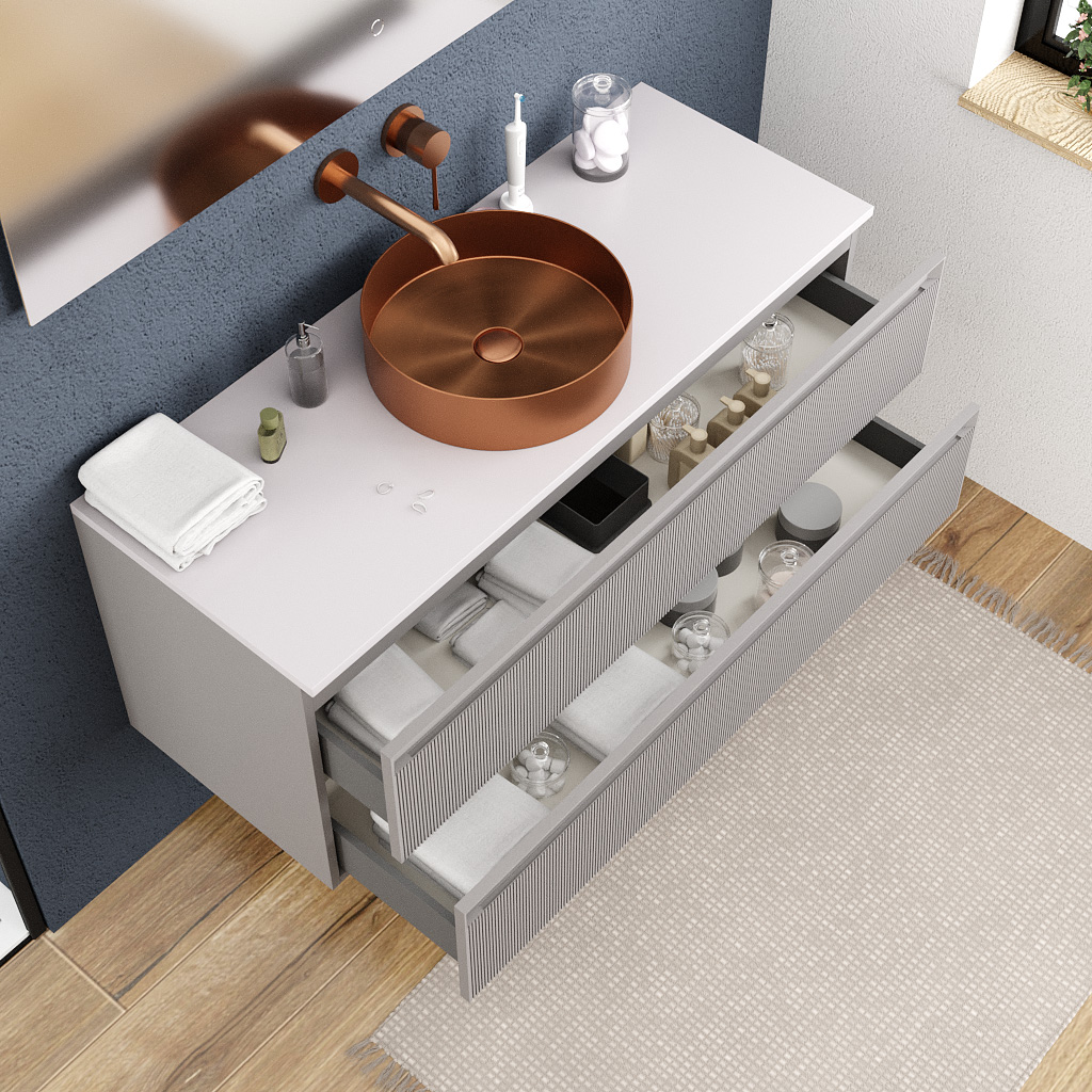 Nom du produit : Meuble de salle de bain + Plan vasque Ceramia Gris Perle – 120 cm