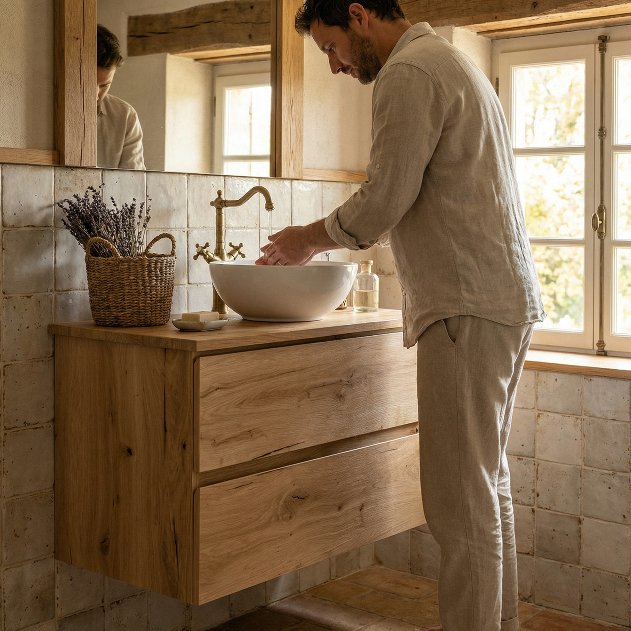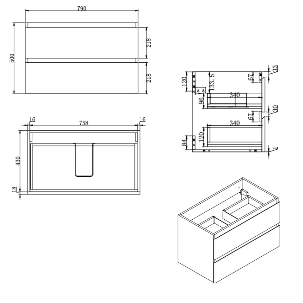 Caractéristiques du meuble de salle de bain suspendu 79x50x45 cm avec plaque de recouvrement, 2 tiroirs indépendants, Swiss Aqua Technologies B-Way, chêne mat (BWAY280OAKDESK) :
