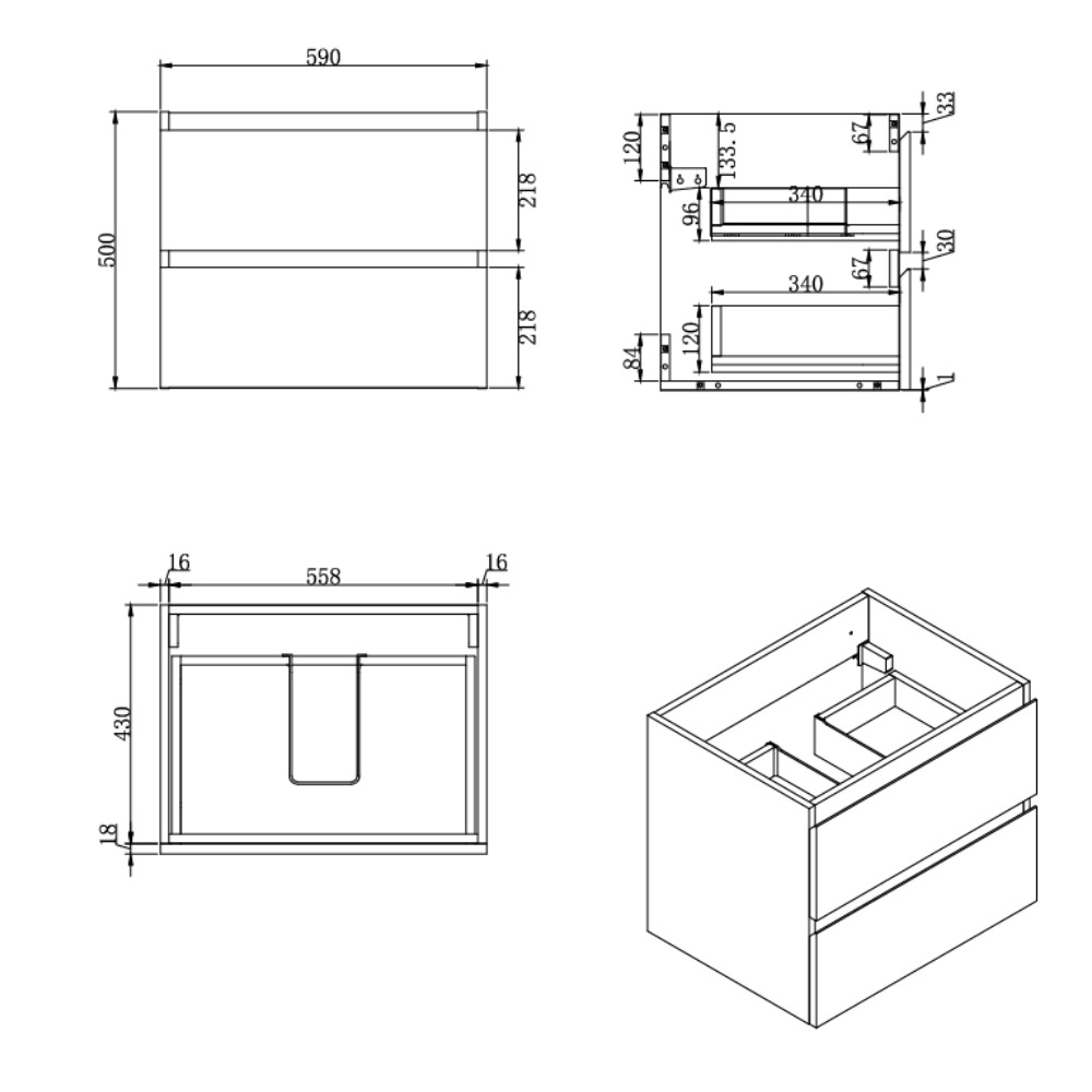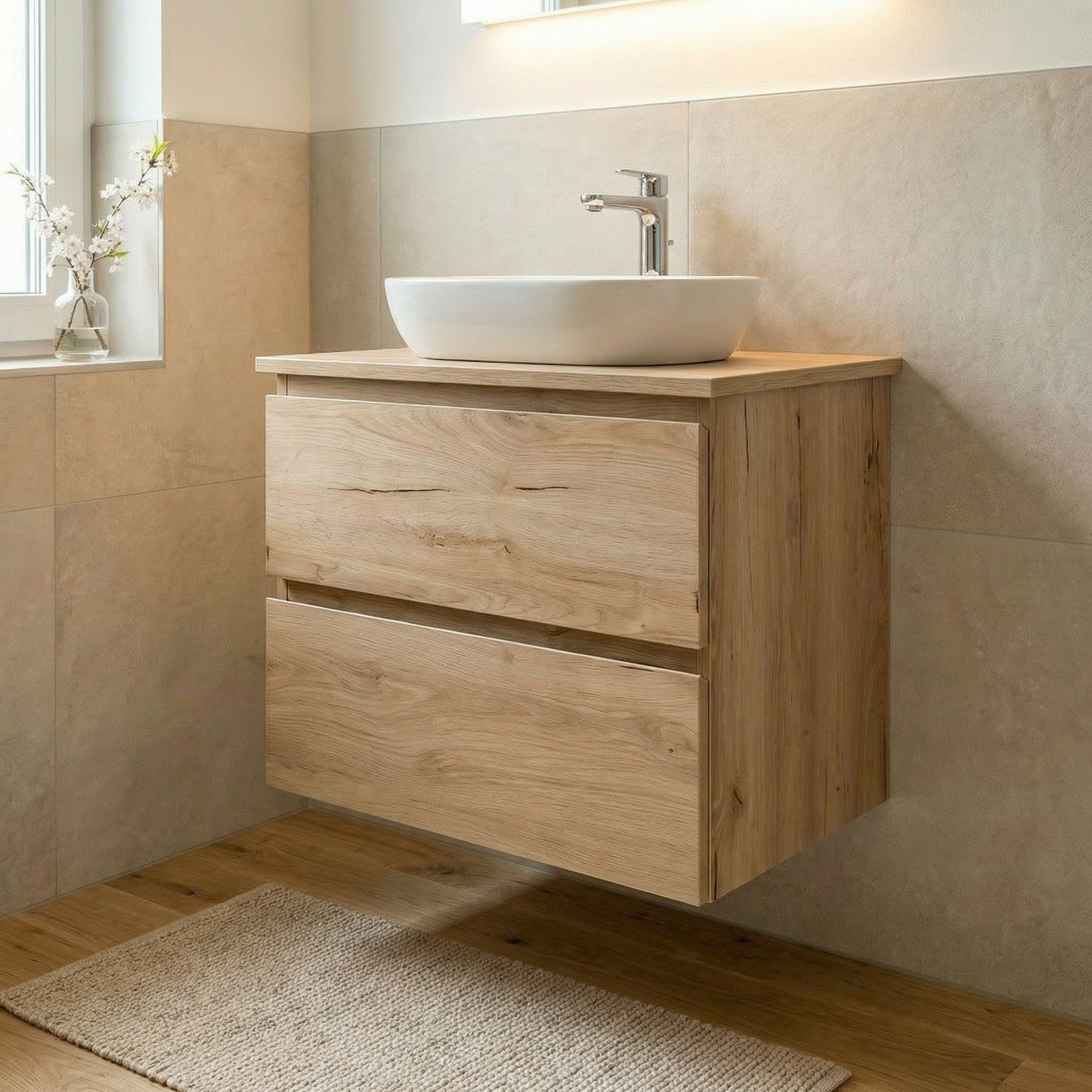 Meuble salle de bain suspendu 59 x 50 x 45 cm – 2 tiroirs – plaque de recouvrement – chêne mat – B-Way (BWAY260OAKDESK)