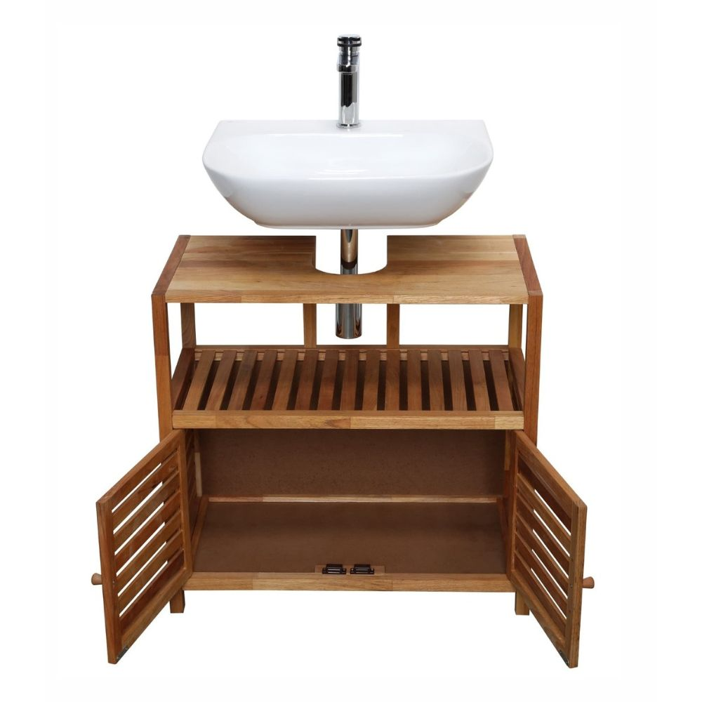 Caractéristiques du meuble de salle de bain sous lavabo Naturel Home 67,5x63x35,5 cm, bois (HOMEUM):