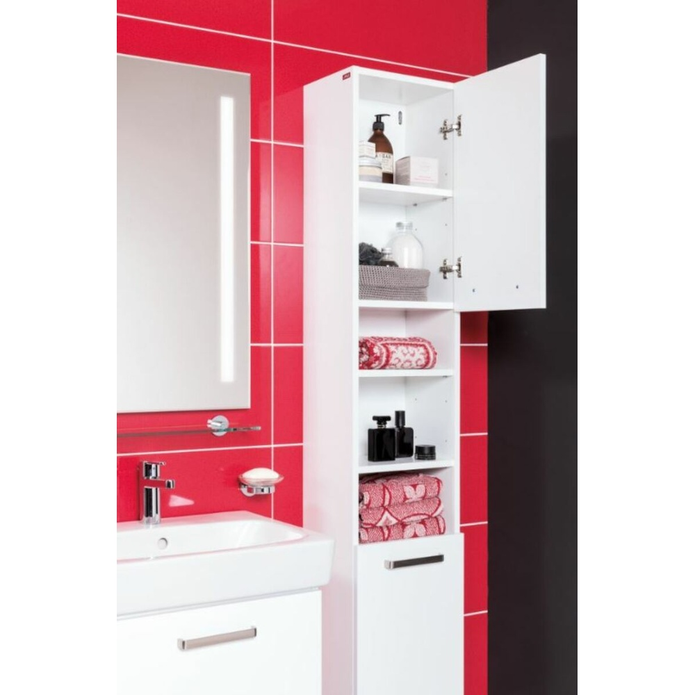 Pensé pour les petites salles de bain ou les espaces optimisés, ce meuble sous lavabo de la série Lyra Plus Viva allie design moderne et fonctionnalité. Sa finition blanche brillante et ses poignées en nickel brossé lui confèrent une allure sobre et contemporaine.