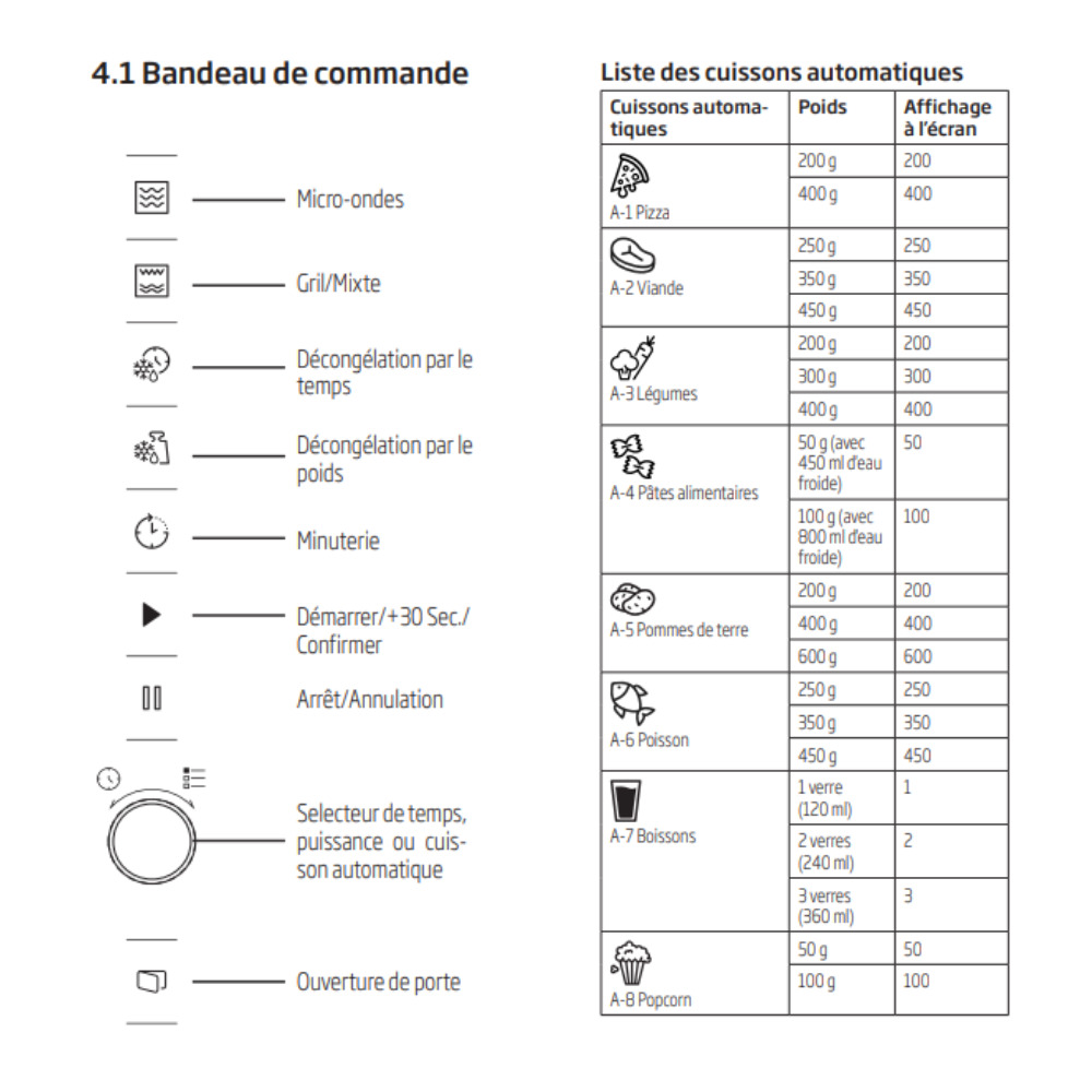 Sa puissance de 900W offre une large possibilité de cuisson et il est possible de réaliser des préparations en utilisant un programme de chauffe et le gril. Sa large variété de fonctions lui permet de préserver la qualité des aliments et de simplifier la cuisine.