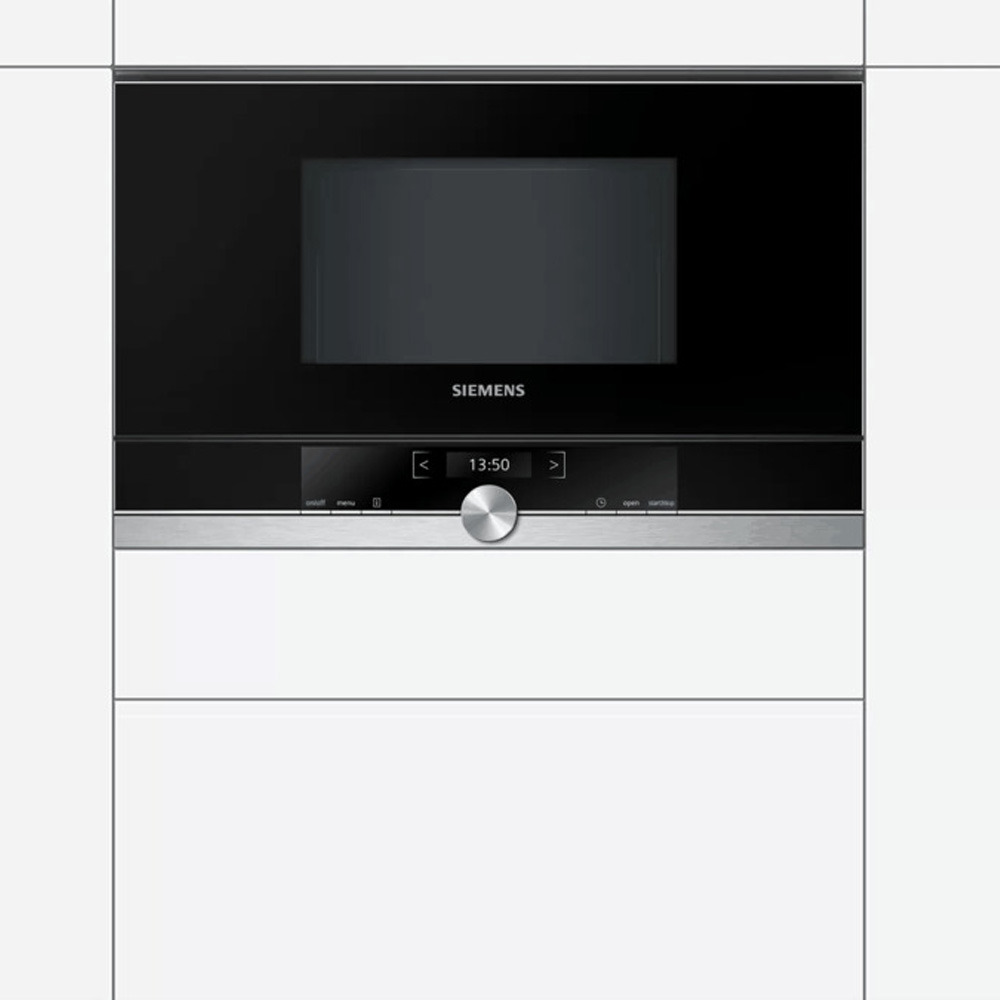 Siemens iQ700 Four à micro-ondes encastrable compact 21L, 7 programmes, Écran TFT, acier inoxydable, noir (BF634LGS1)