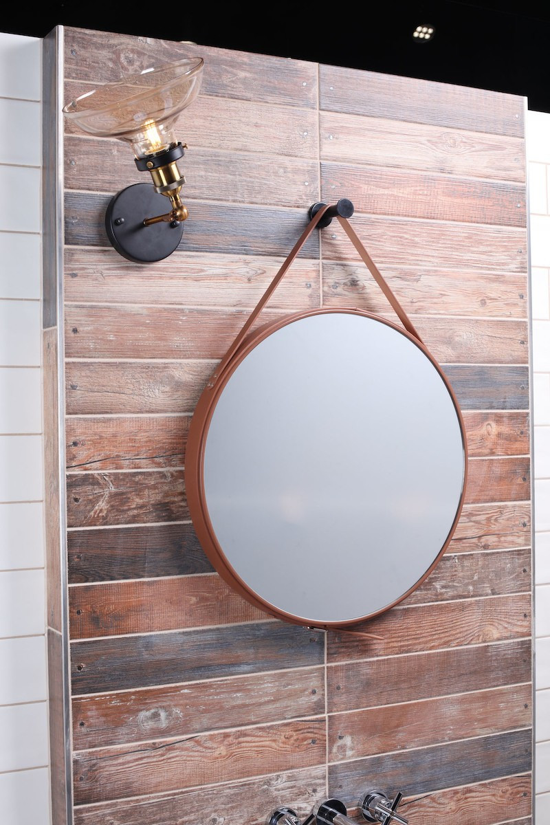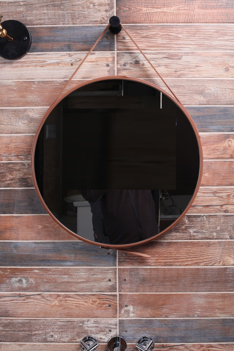 Caractéristiques du Miroir à suspendre rond 50x50 cm avec lanière en cuir, Marron (ZREM50H) :