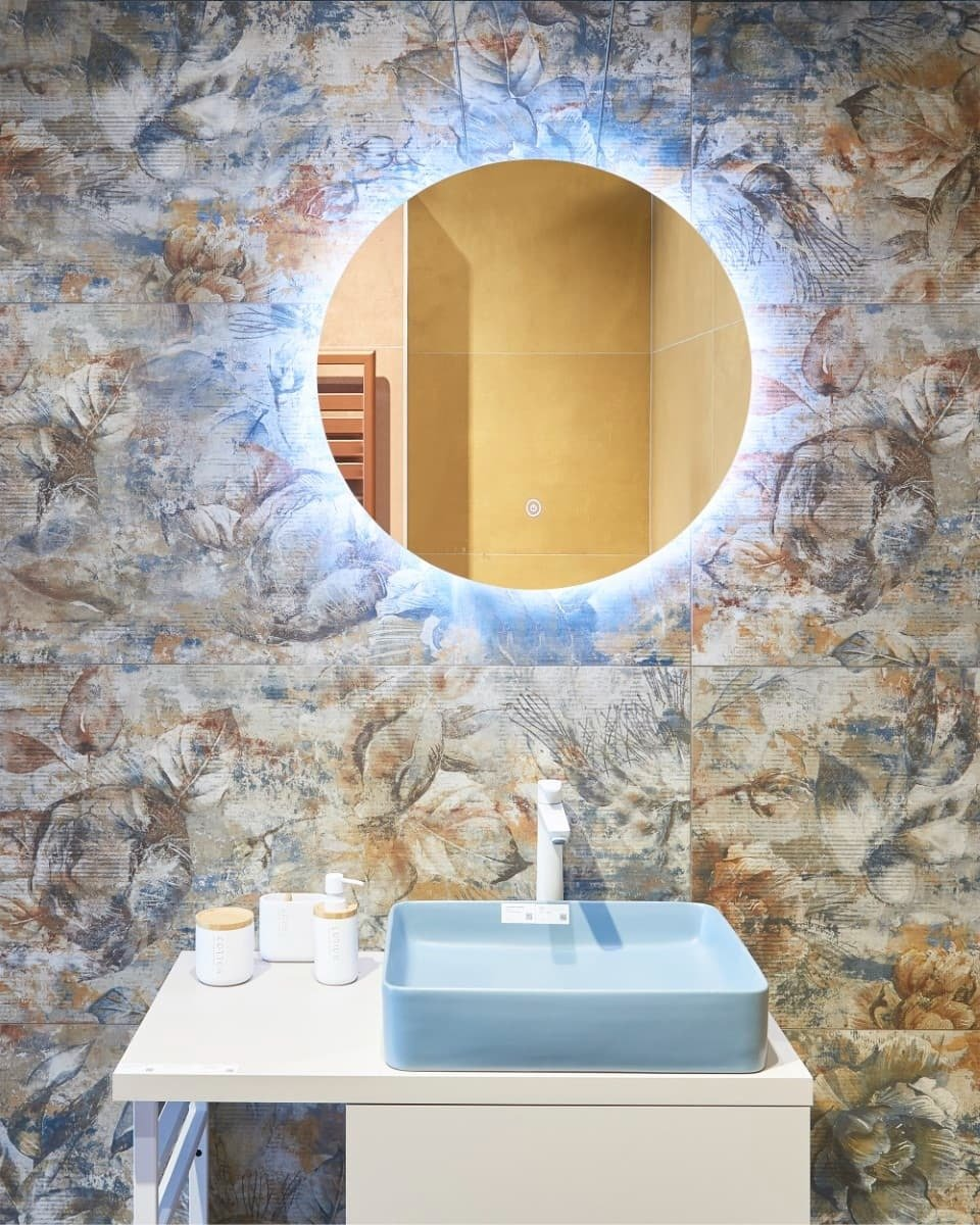 Miroir LED Rond Naturel Project 60x60 cm – Capteur Tactile, Film Chauffant Anti-Buée, Éclairage Personnalisable, IP44