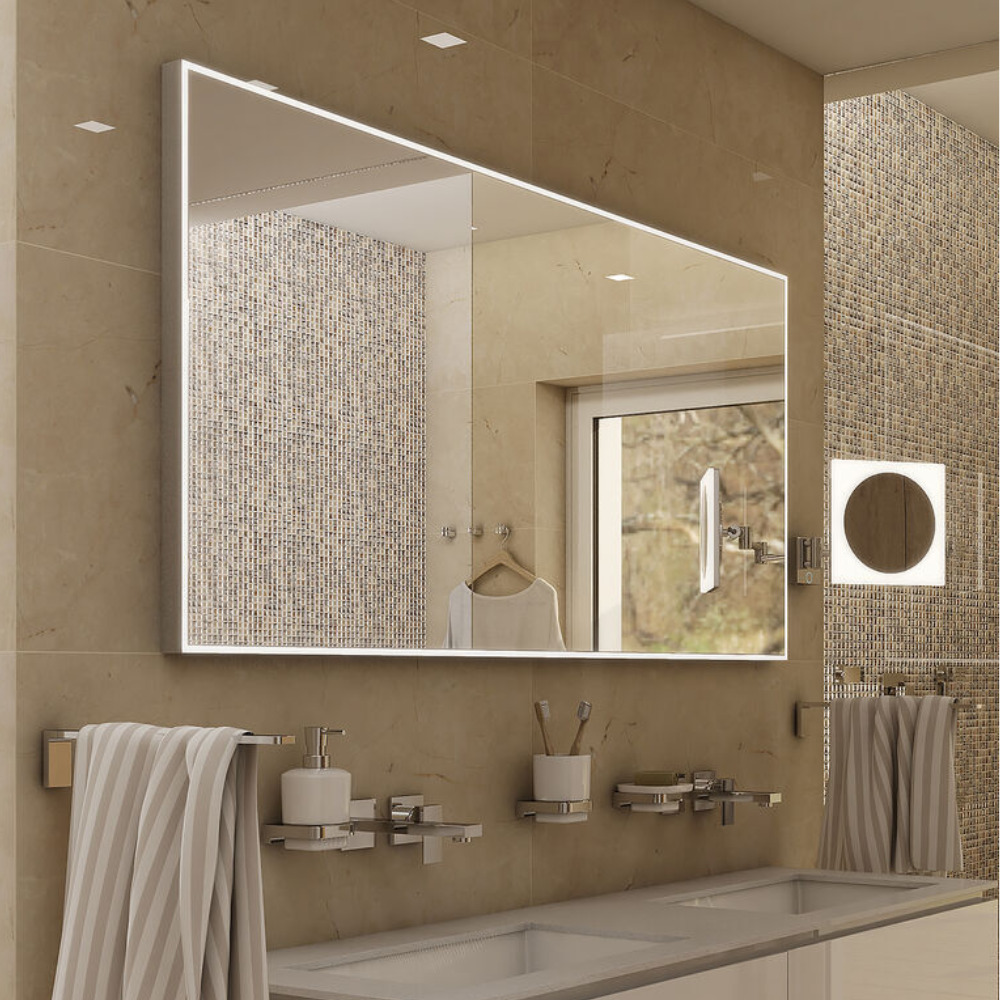 - Éclairage LED périphérique : lumière diffusée tout autour du miroir