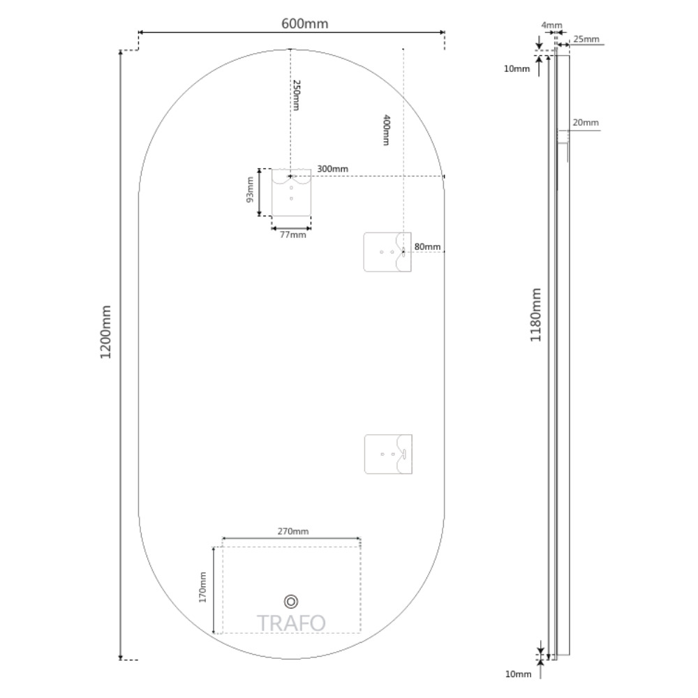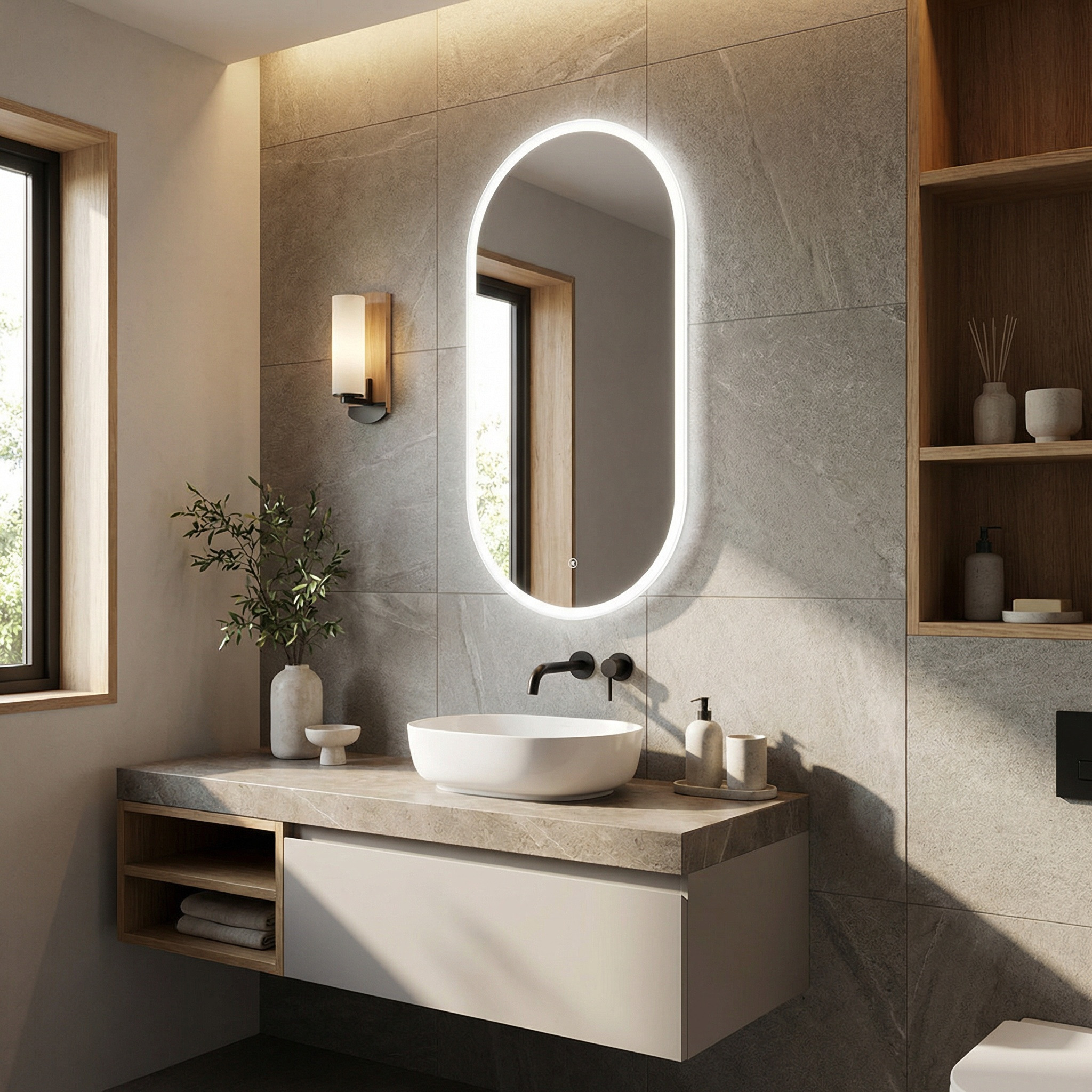 Miroir LED ovale salle de bain 60 x 120 cm – 3 couleurs – anti-buée – capteur – suspendu – Project (ZPROV12060LED)