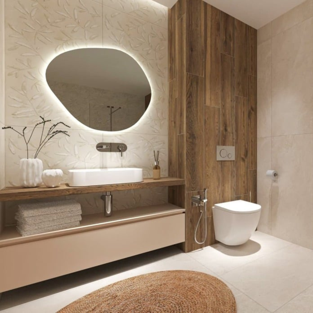 Caractéristiques du miroir suspendu asymétrique 80x80 cm avec éclairage LED et capteur, Swiss Aqua Technologies, blanc neutre (SATZASLED80) :