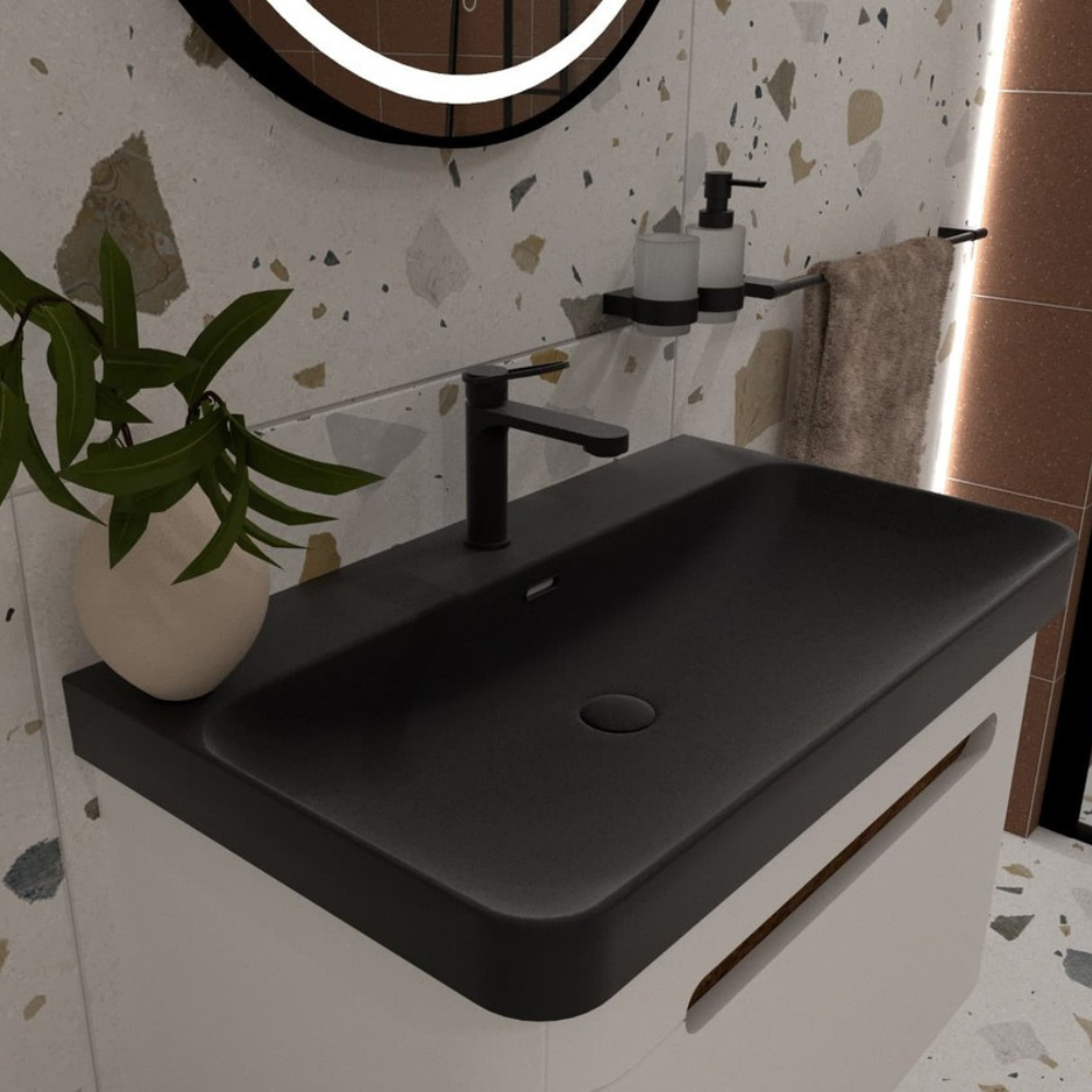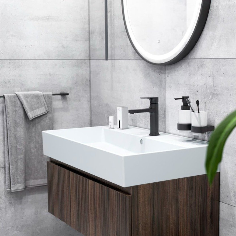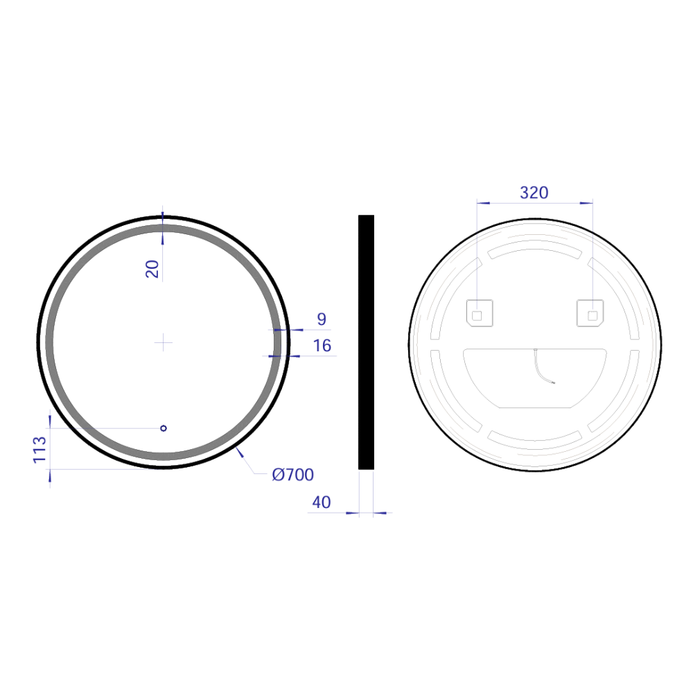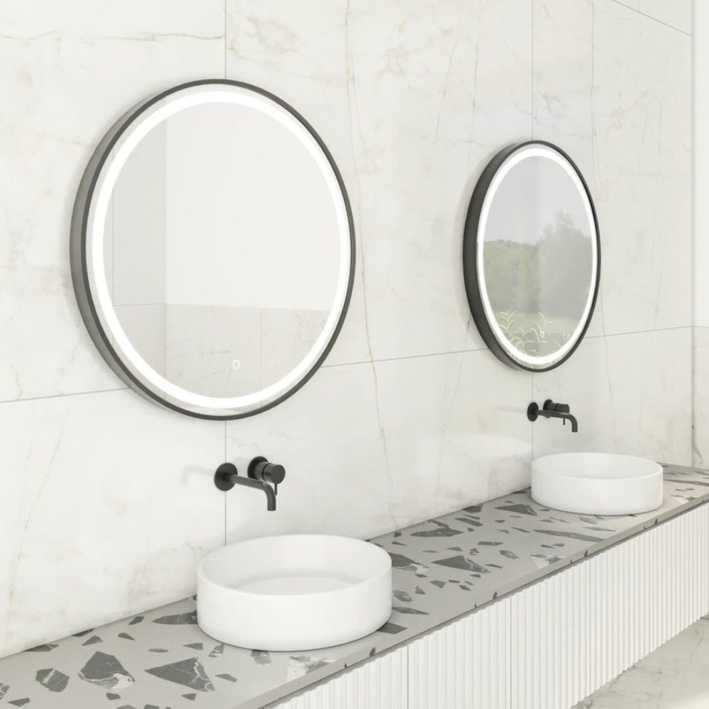 Swiss Aqua Technologies 70x70 cm miroir suspendu rond avec éclairage LED et capteur, noir (SATZKULED70CE)