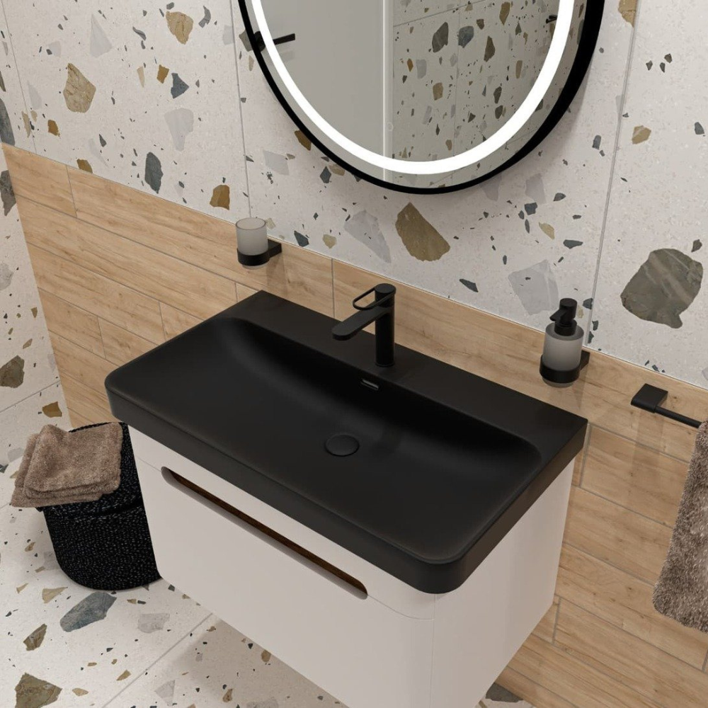 Caractéristiques du miroir suspendu rond 70x70 cm avec éclairage LED et capteur, Swiss Aqua Technologies, noir (SATZKULED70CE) :