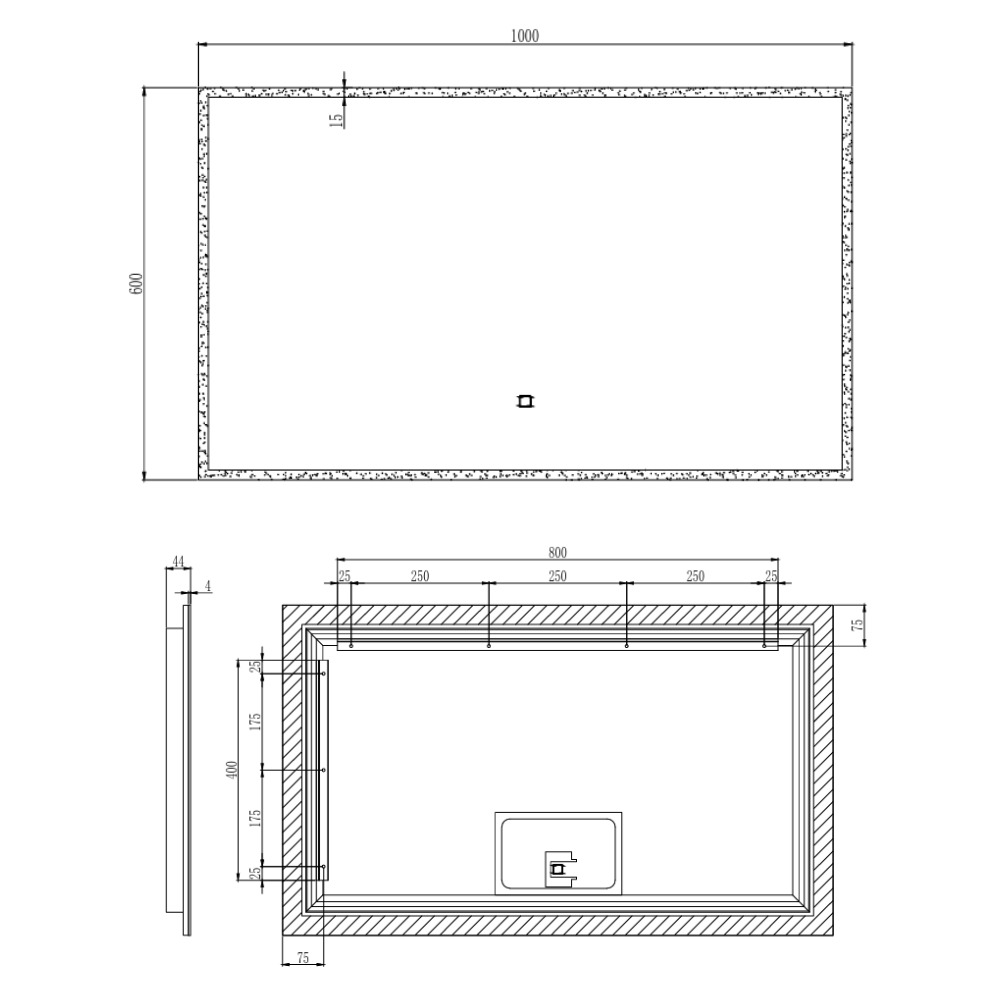 Miroir LED salle de bain 60x100 cm avec éclairage 3 couleurs et capteur rectangulaire Feel (SATZFEELOBLED60100)