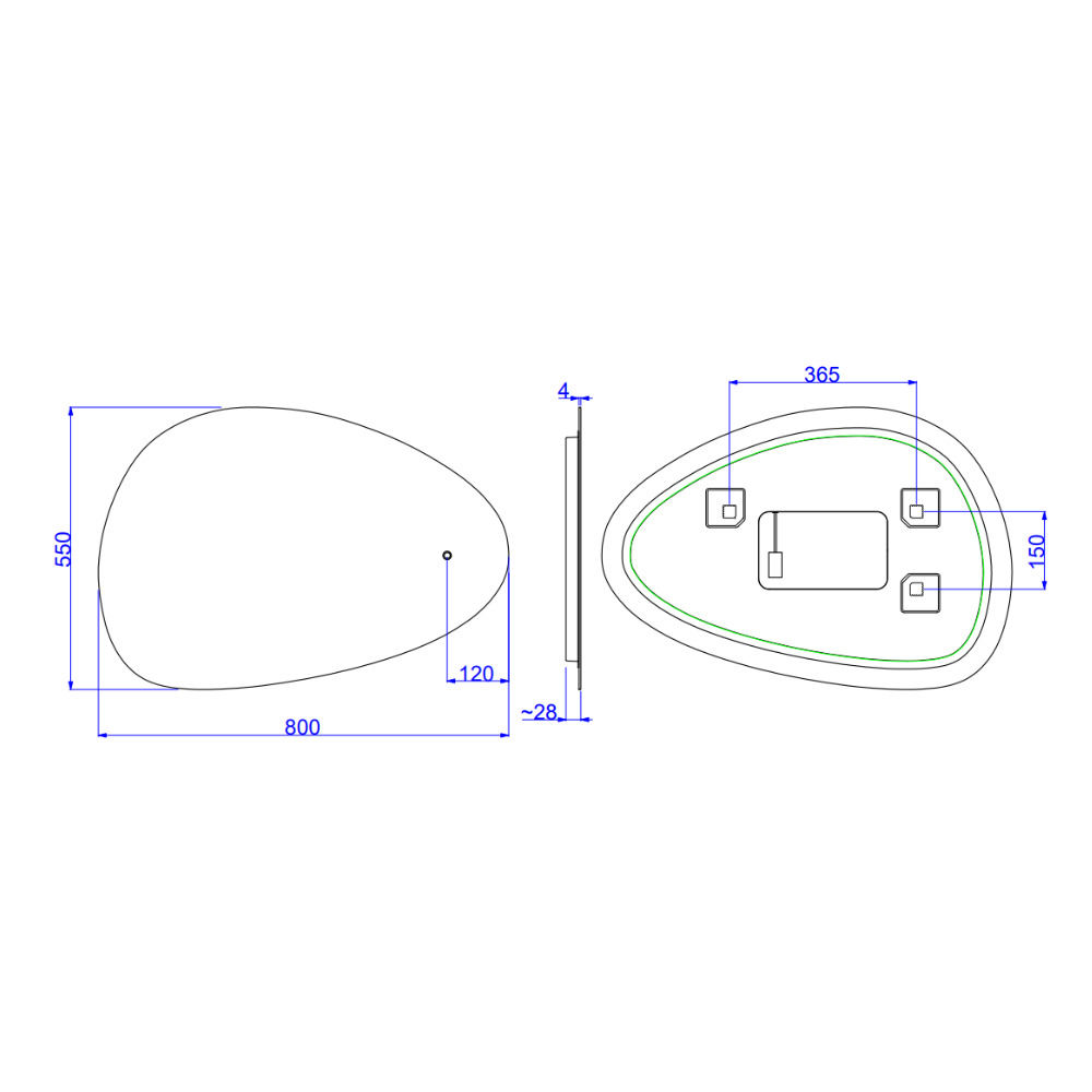 Caractéristiques du miroir suspendu asymétrique 80x55 cm avec éclairage LED et capteur, Swiss Aqua Technologies, noir (SATZPURASLED5580) :