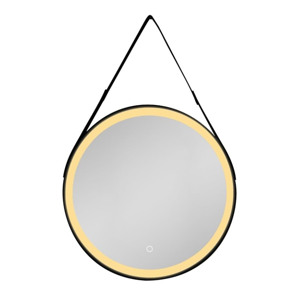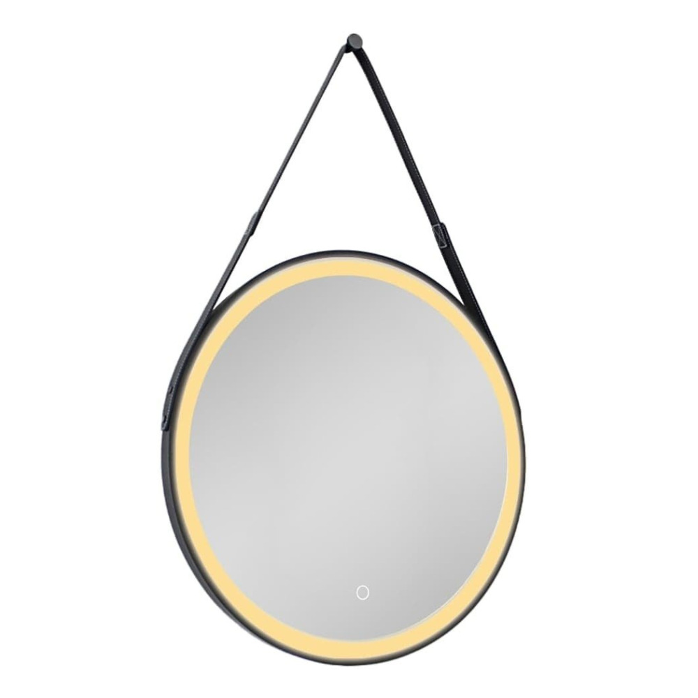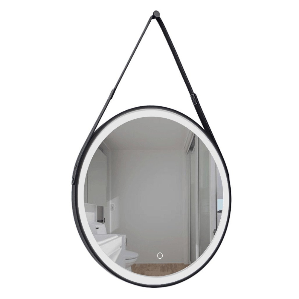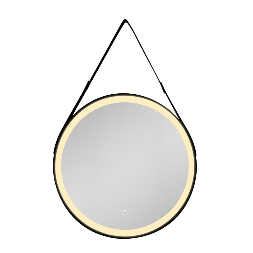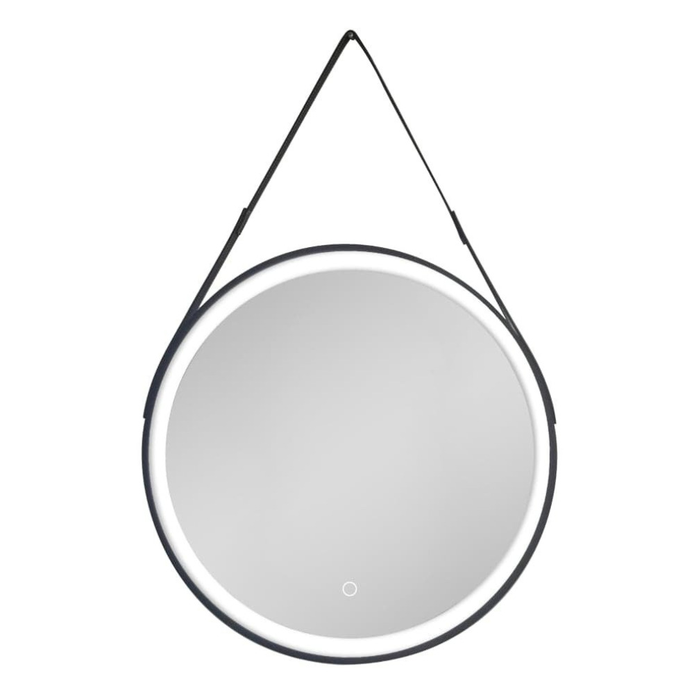 60x60 cm miroir suspendu rond avec éclairage LED et capteur, cadre en métal, noir (SATZREMLED60CE)