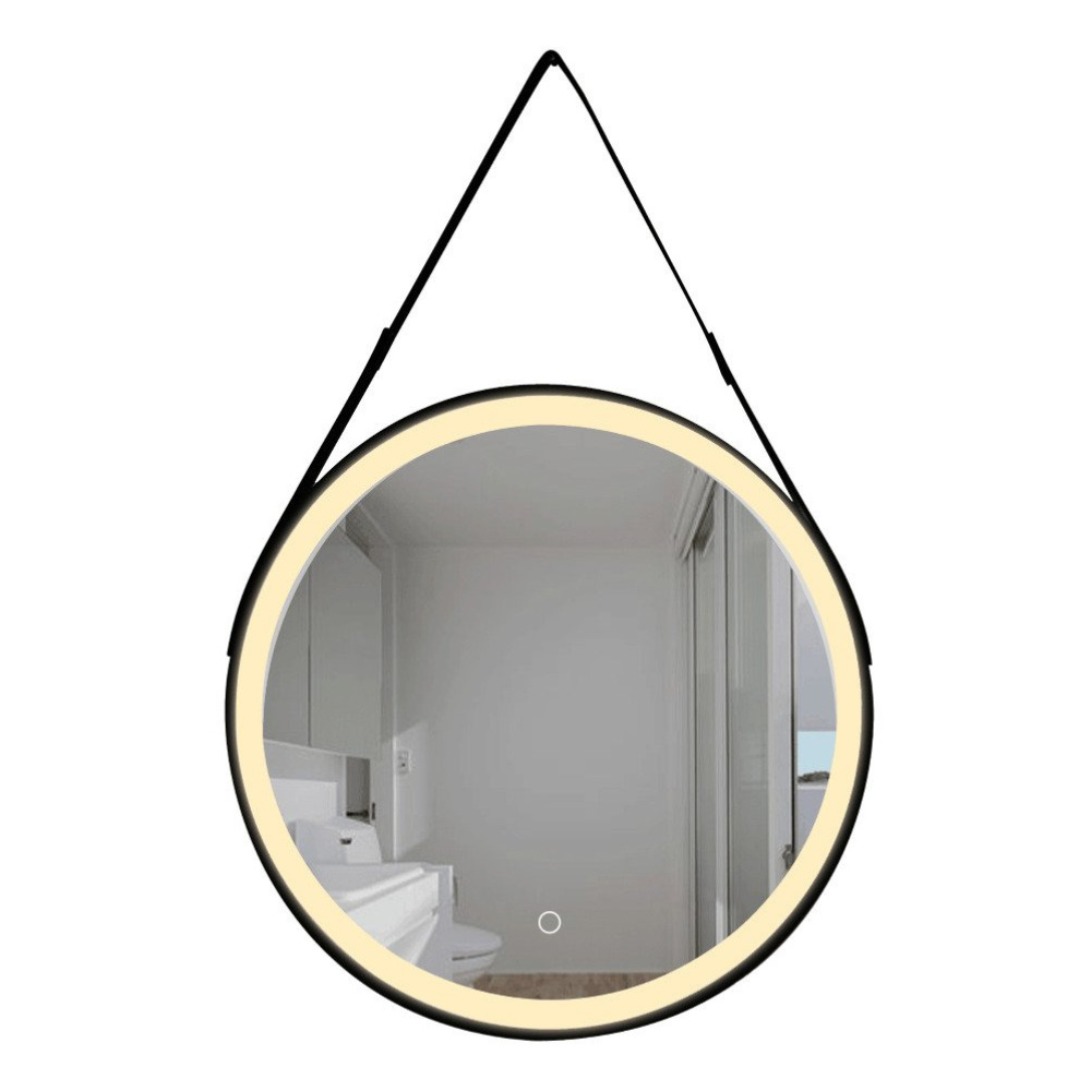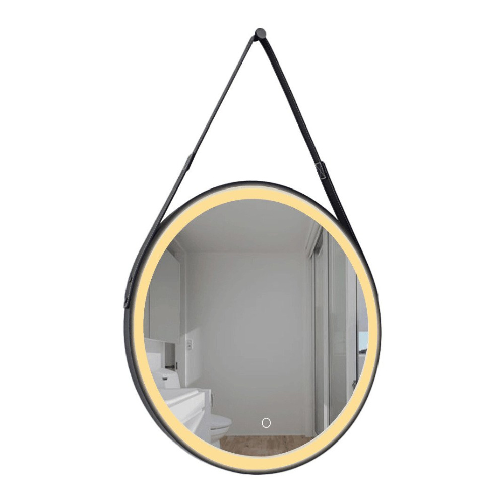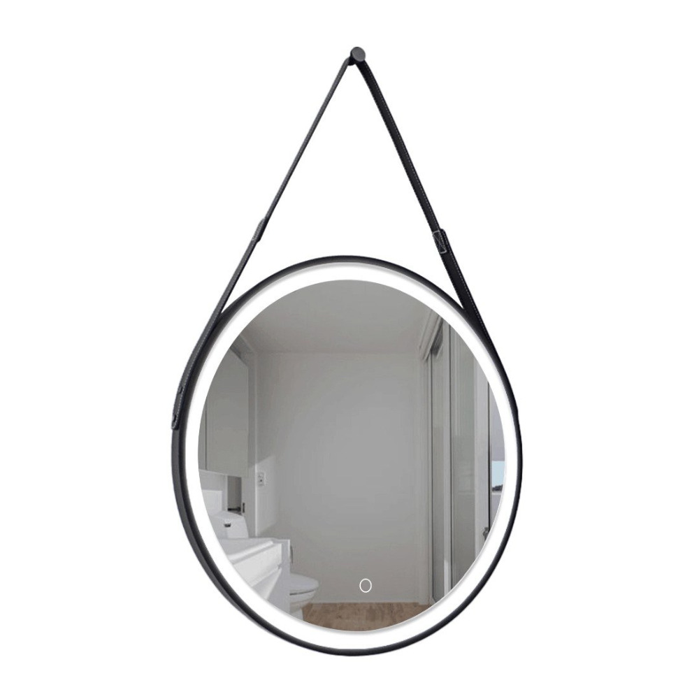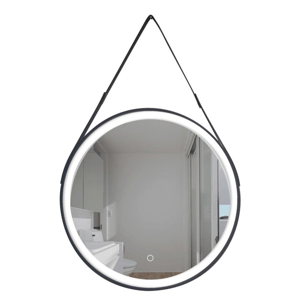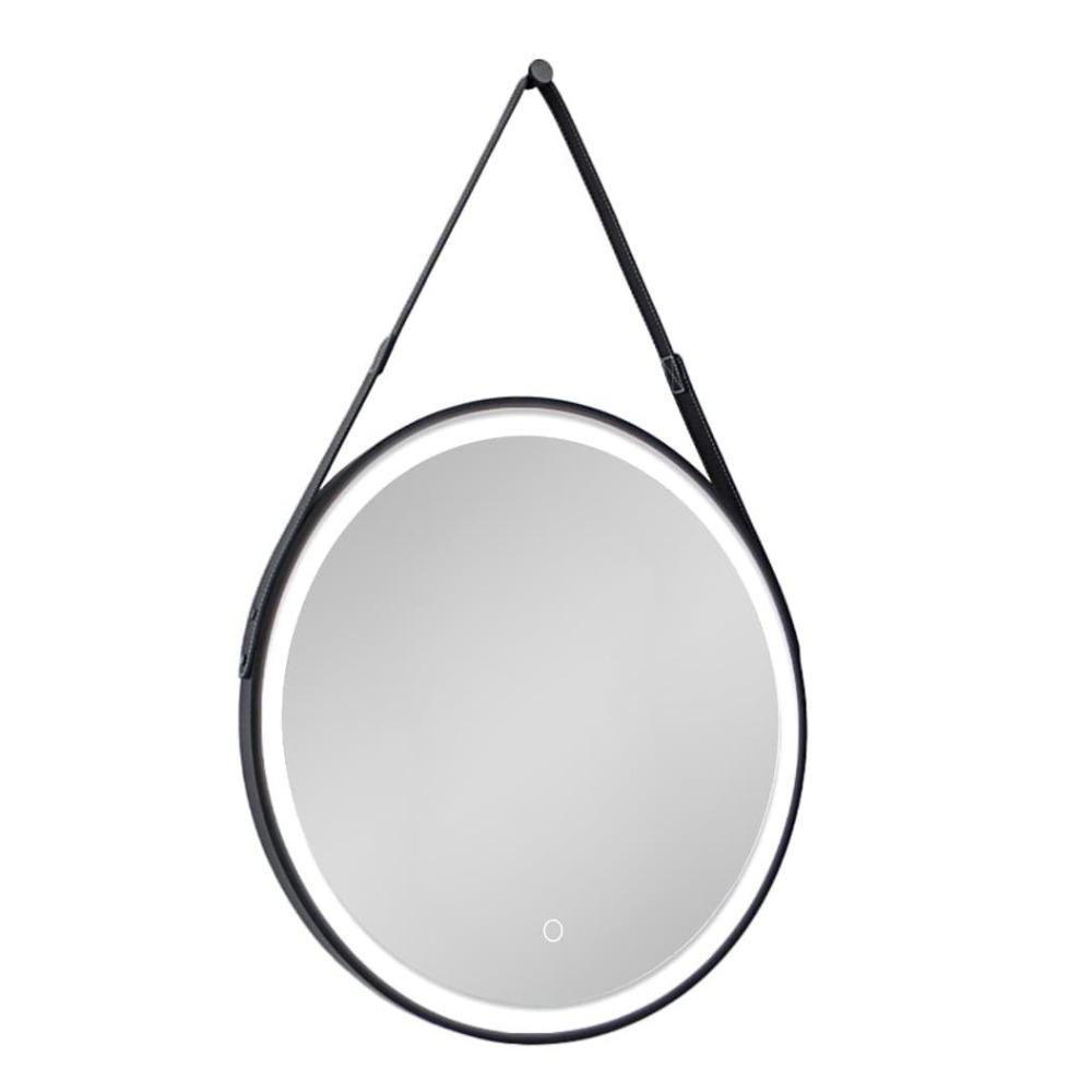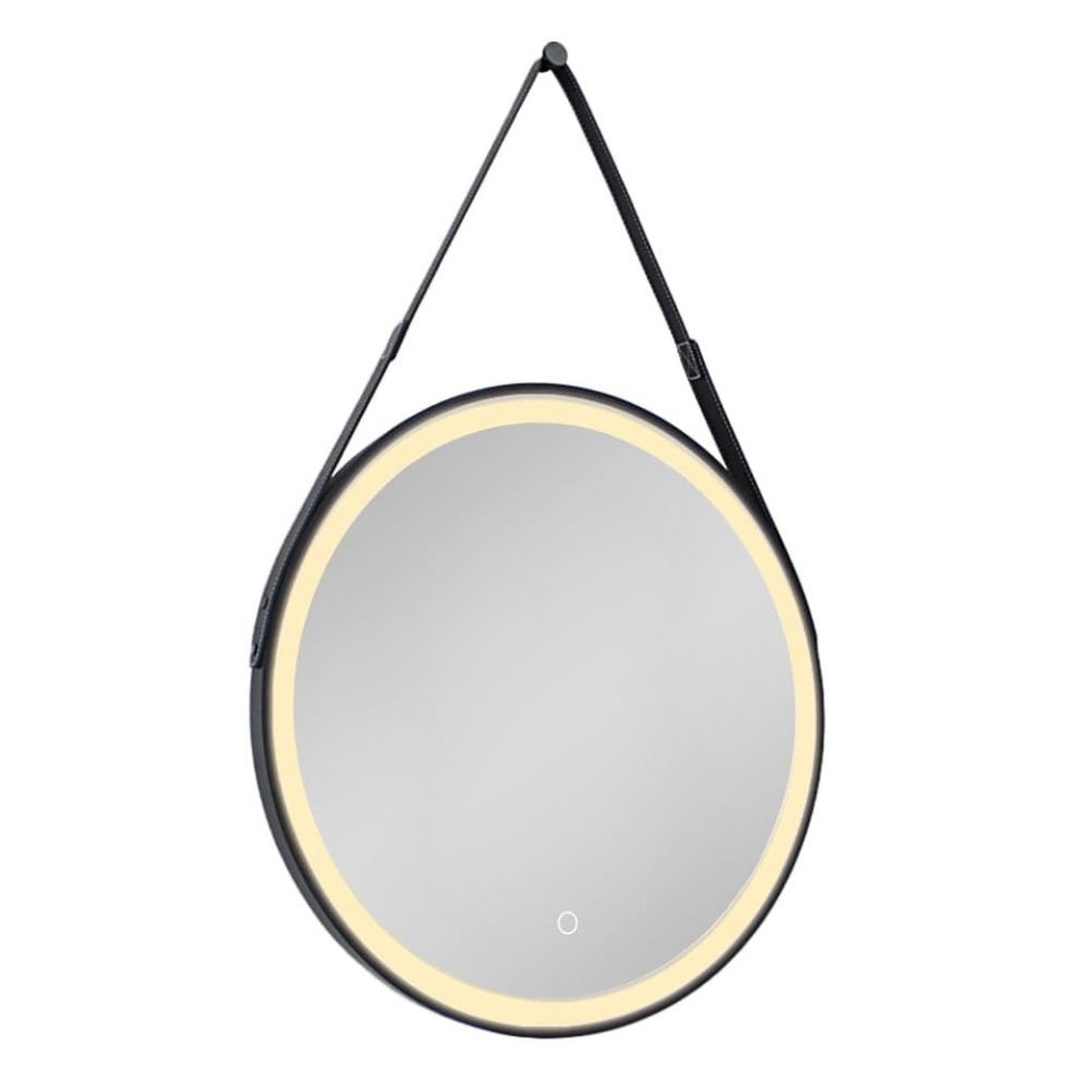 60x60 cm miroir suspendu rond avec éclairage LED et capteur, cadre en métal, noir (SATZREMLED60CE)