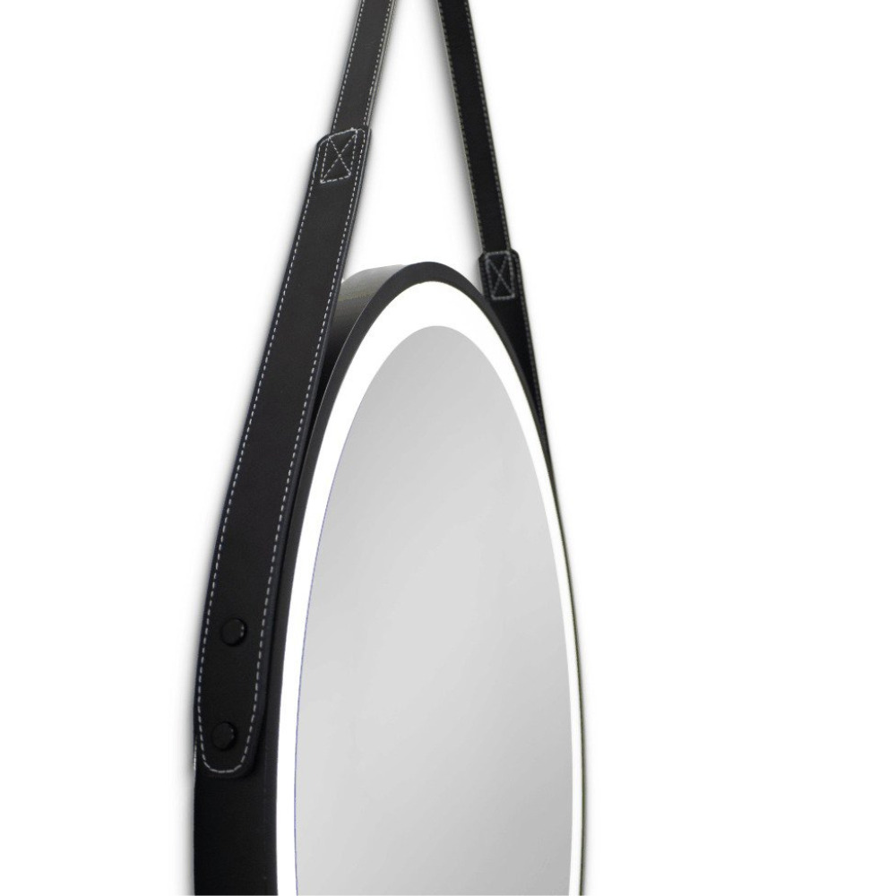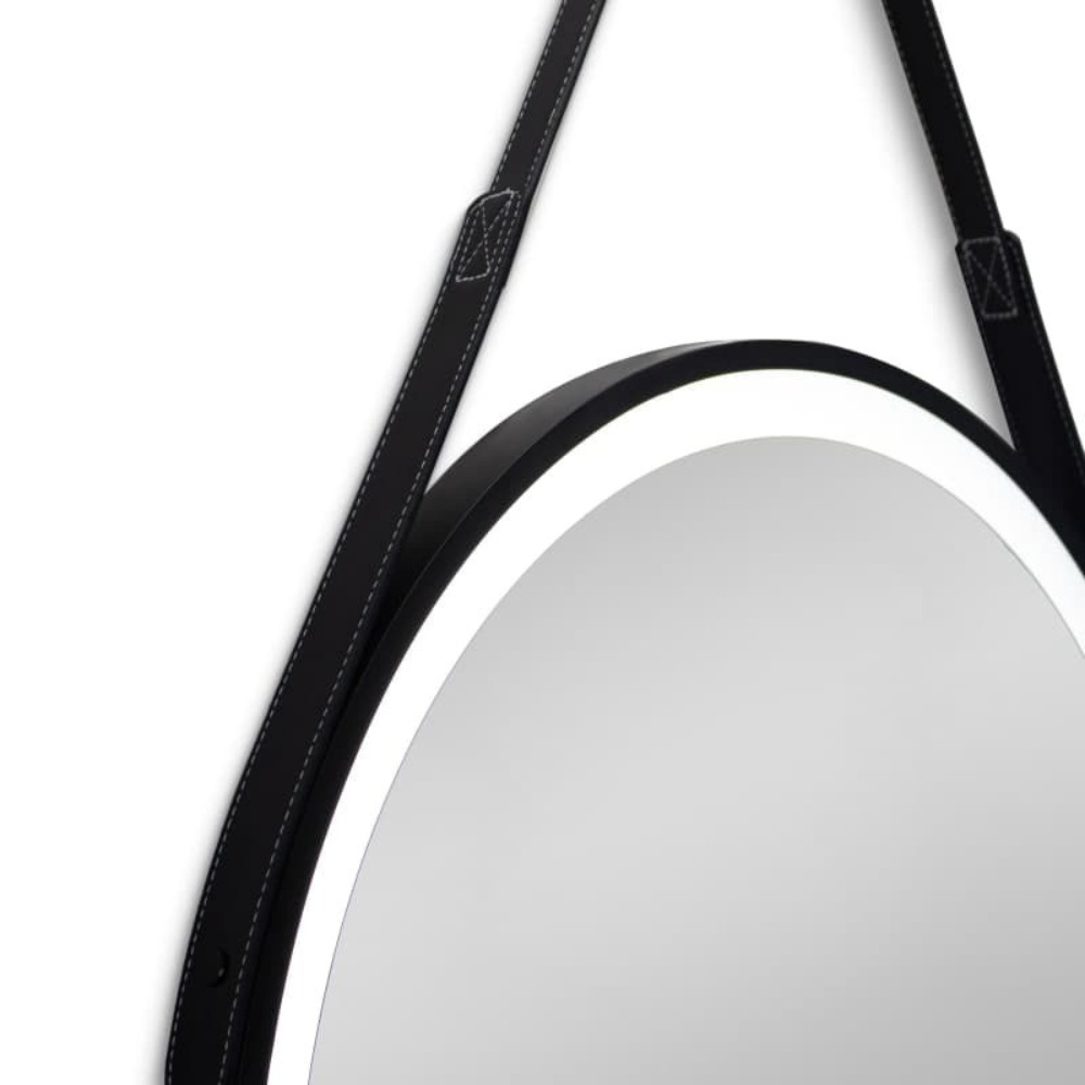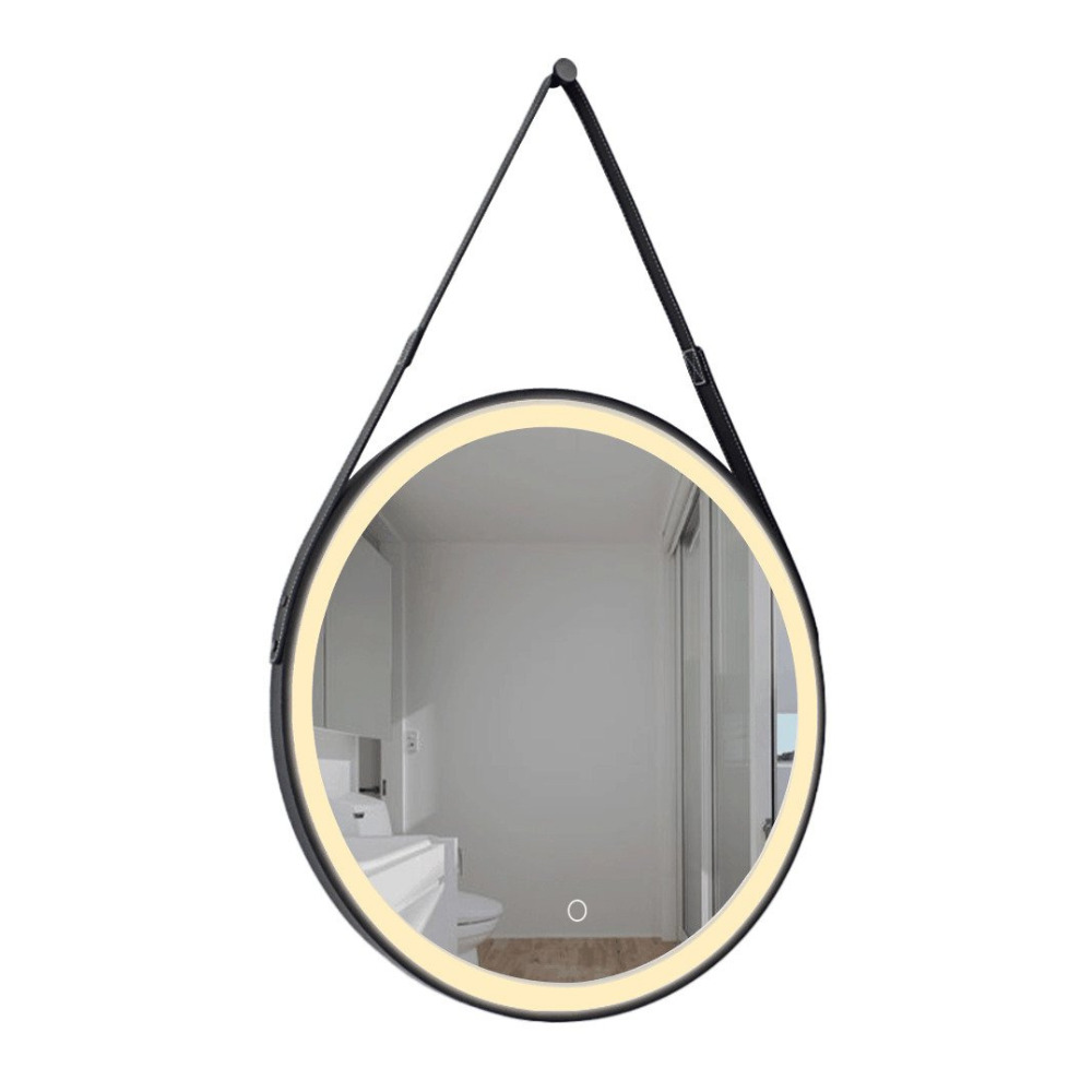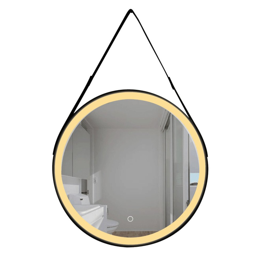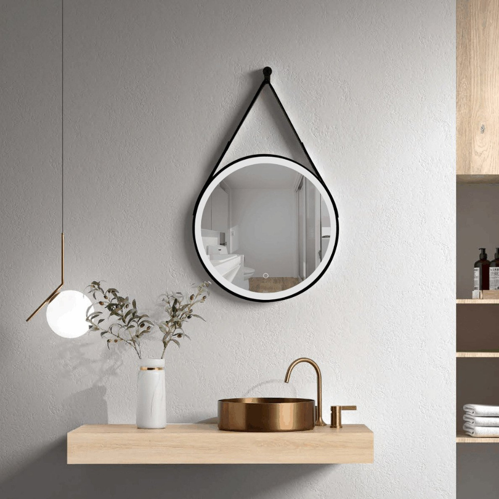 60x60 cm miroir suspendu rond avec éclairage LED et capteur, cadre en métal, noir (SATZREMLED60CE)
