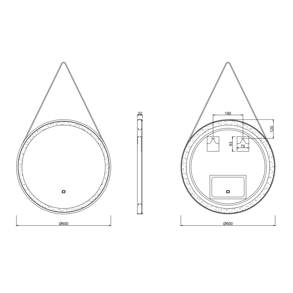 Caractéristiques du miroir suspendu rond 60x60 cm avec éclairage LED et capteur, cadre en métal, Swiss Aqua Technologies, noir (SATZREMLED60CE) :
