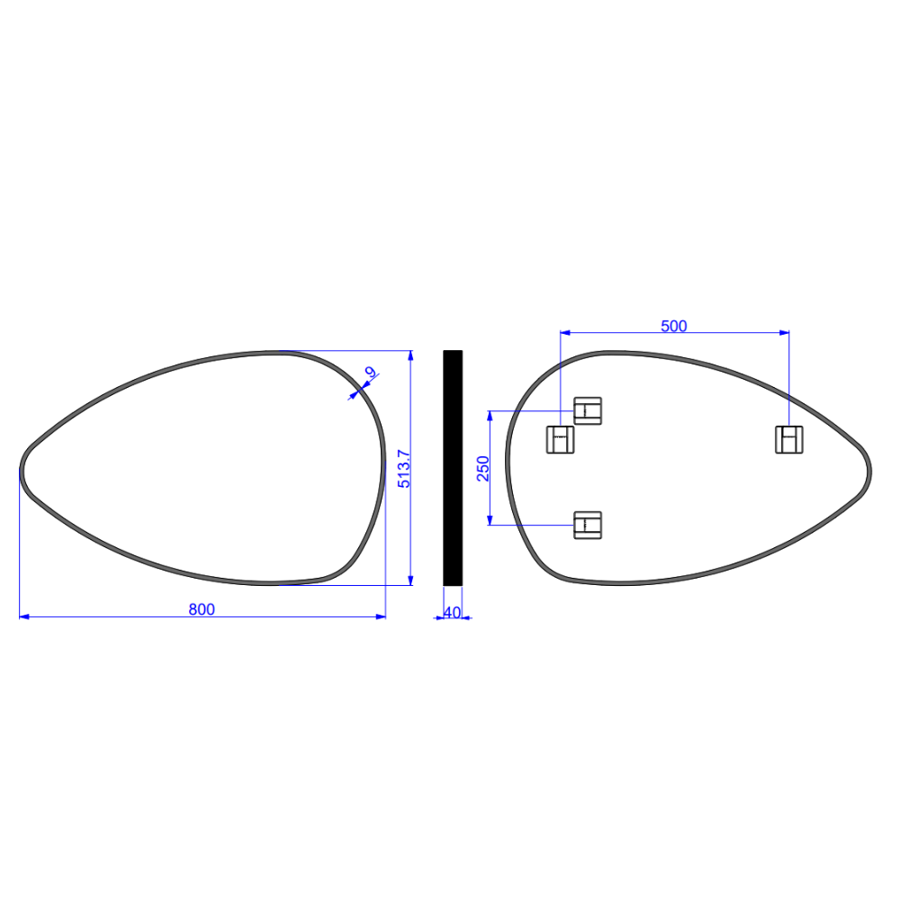 Caractéristiques du miroir suspendu asymétrique 51x80 cm, cadre en aluminium, Swiss Aqua Technologies Purity, noir (SATZPURAS5180CE) :