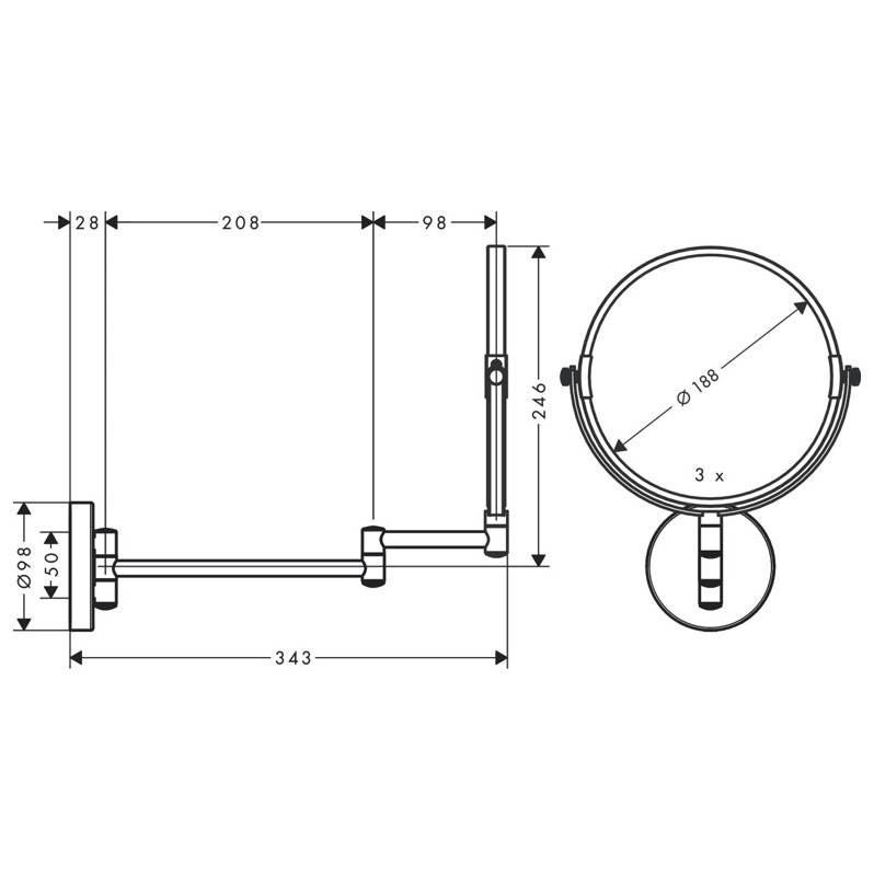 Caractéristiques du miroir grossissant, Chromé Hansgrohe Logis Universal (73561000) :