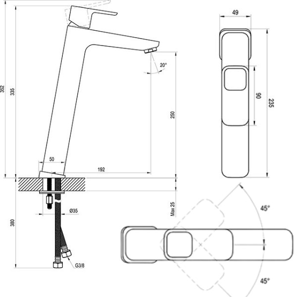 - Hauteur du mitigeur: 334 mm
