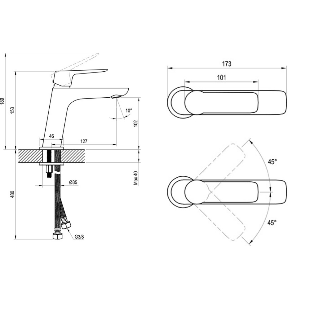 - Tuyaux de raccordement : Flexibles de 450 mm, diamètre de G3/8