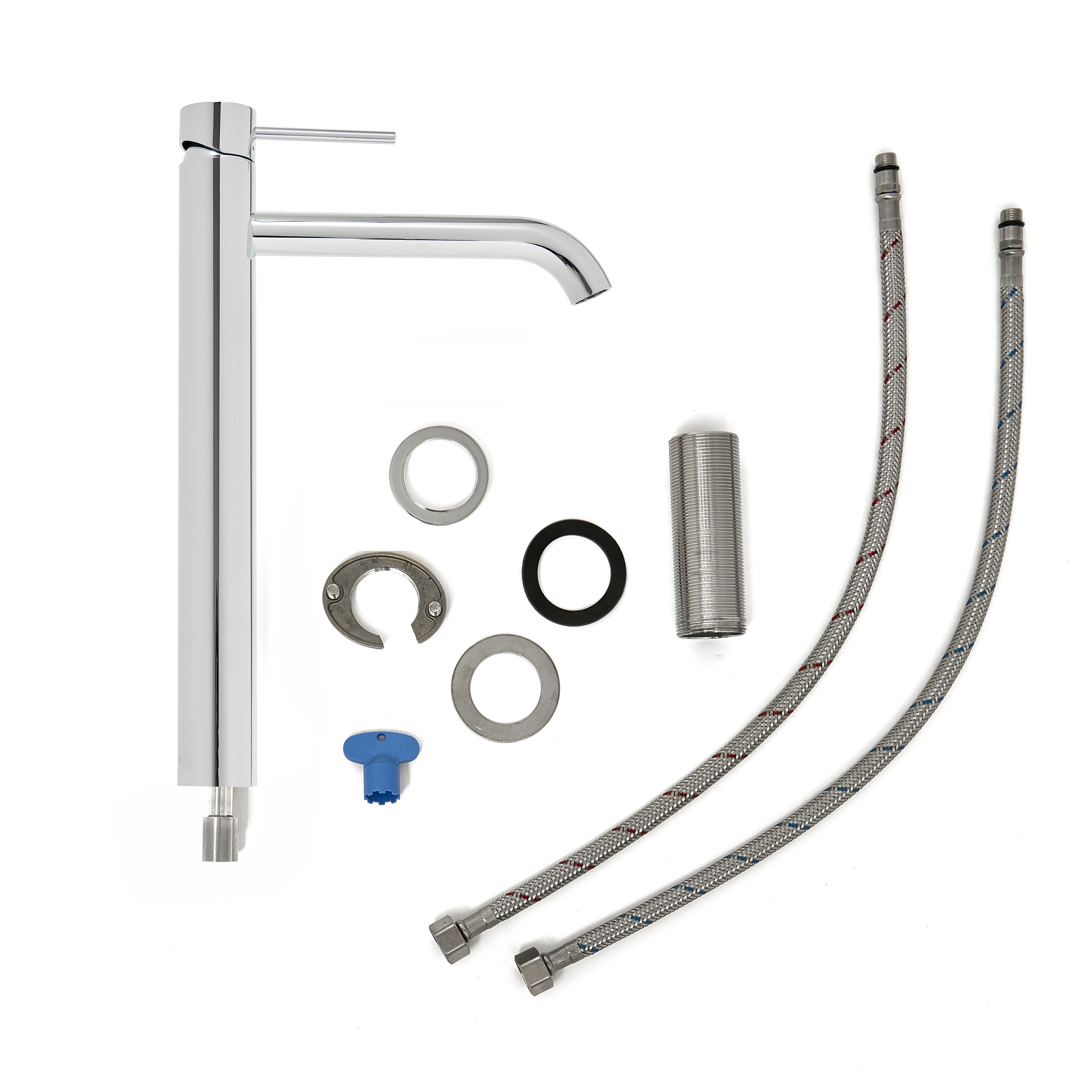Swiss Aqua Technologies Aurum mitigeur lavabo haut 30,8 cm en acier inoxydable, à levier, sans vidage, chrome brillant (SATBAUR285CR)