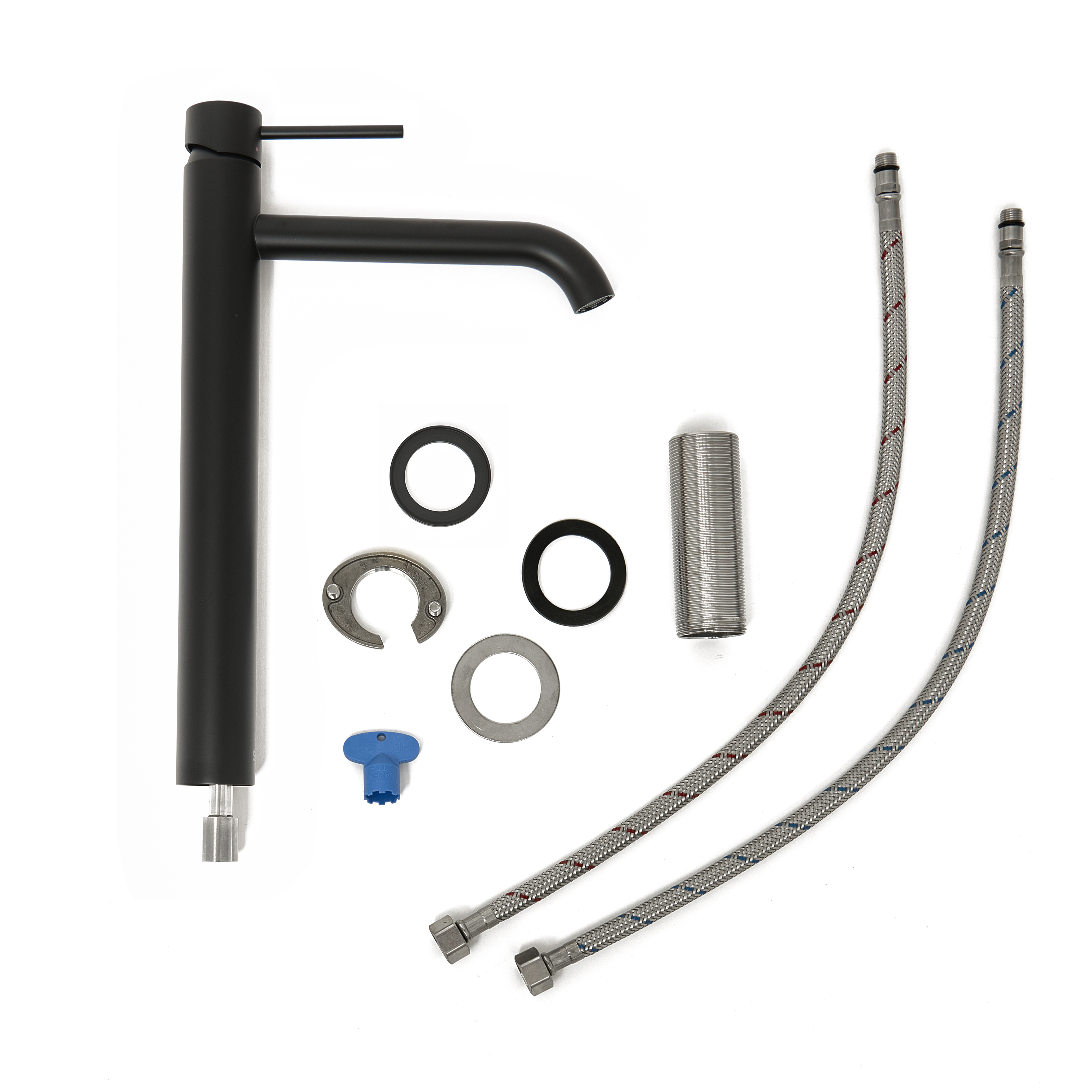 Swiss Aqua Technologies Aurum mitigeur lavabo haut 30,8 cm en acier inoxydable, à levier, sans vidage, noir mat (SATBAUR285C)