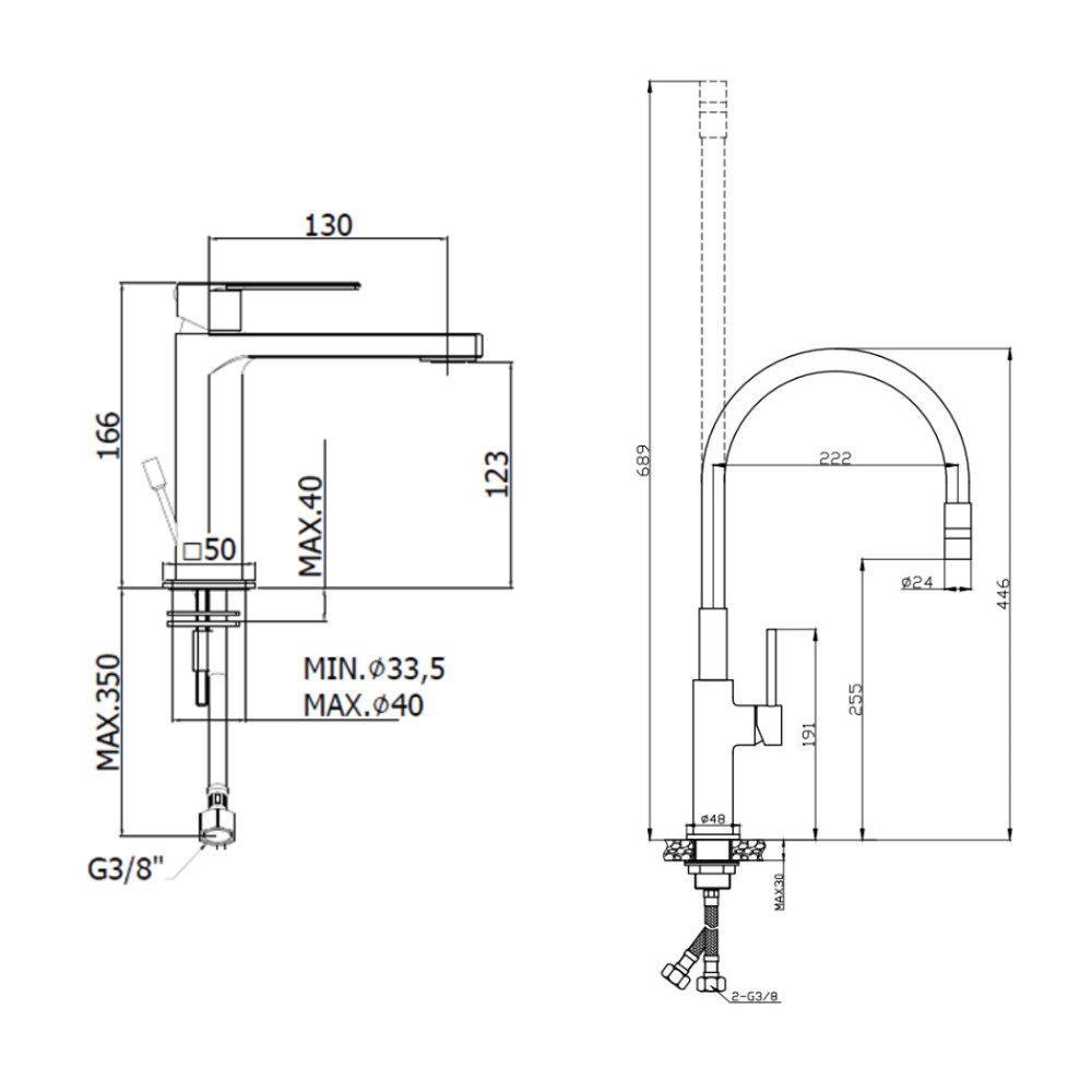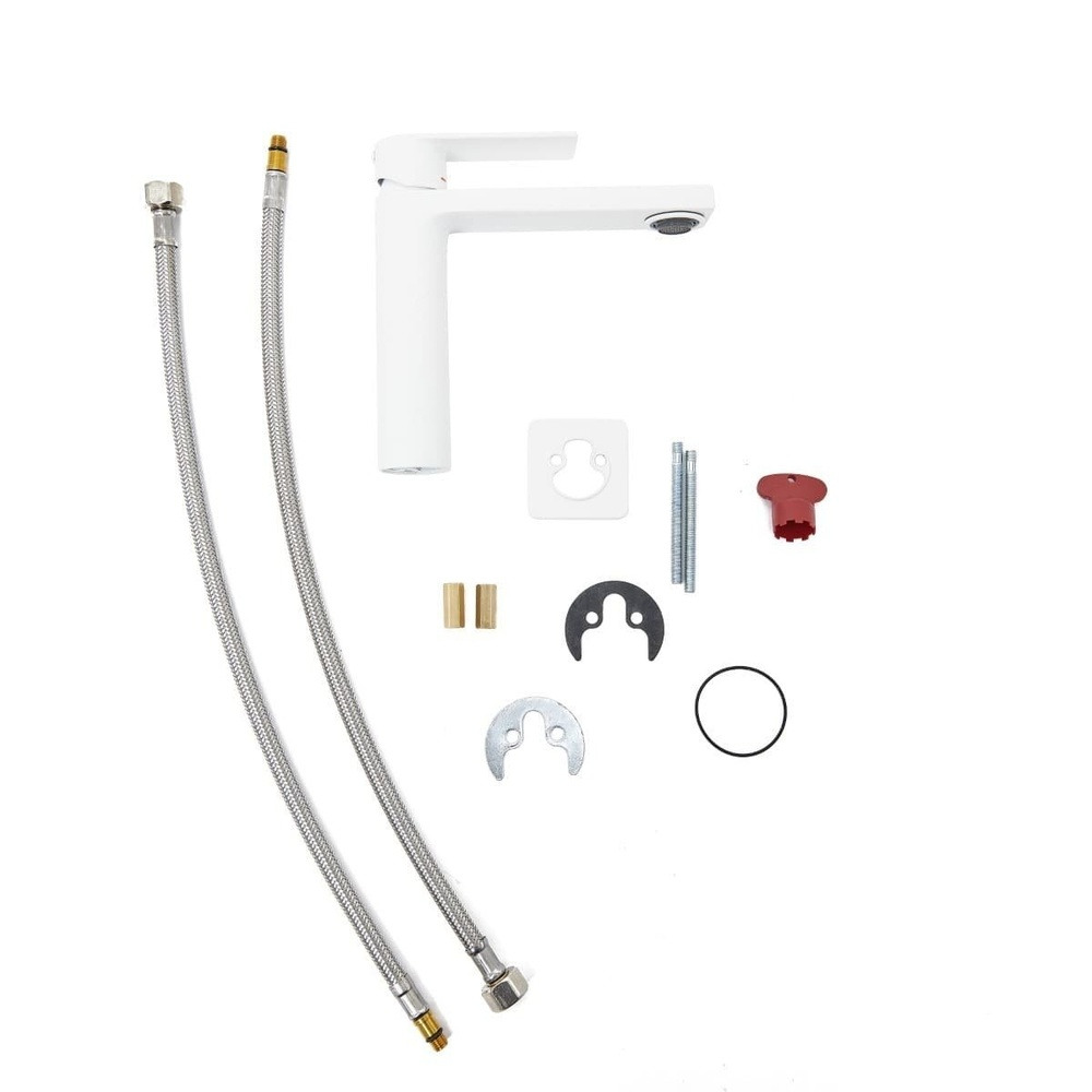 set mitigeur lavabo à levier sans vidage + mitigeur cuisine bec flexible, aérateur Neoperl®, blanc (SATBSD271B)