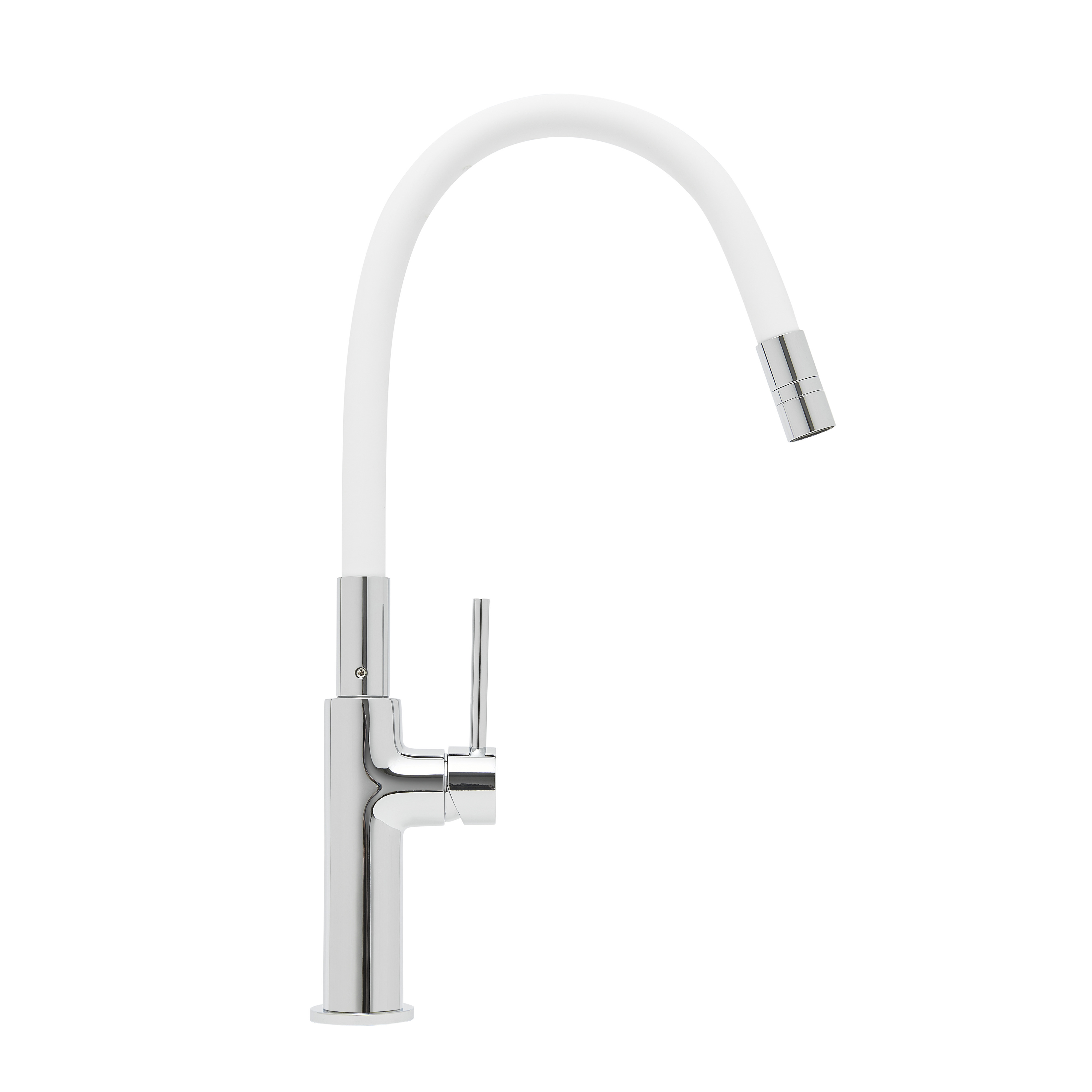 Mitigeur pour évier de cuisine, bec flexible en silicone, aérateur Neoperl®, cartouche en céramique, blanc/chrome (SATBSD290B) :