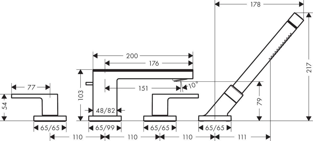 Set de finition mélangeur 4 trous pour montage sur bord de baignoire (47430000) avec:
