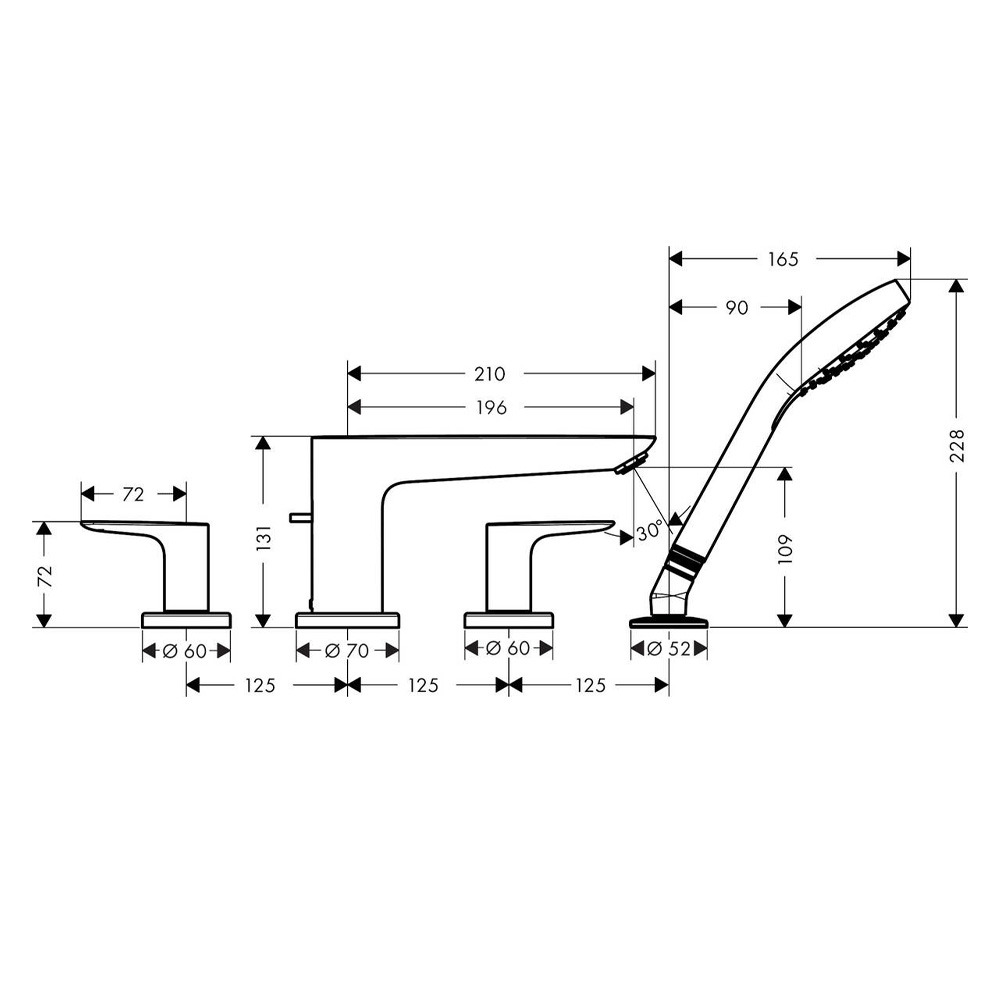 Caractéristiques du mélangeur 4 trous bronze brossé Talis E pour baignoire :