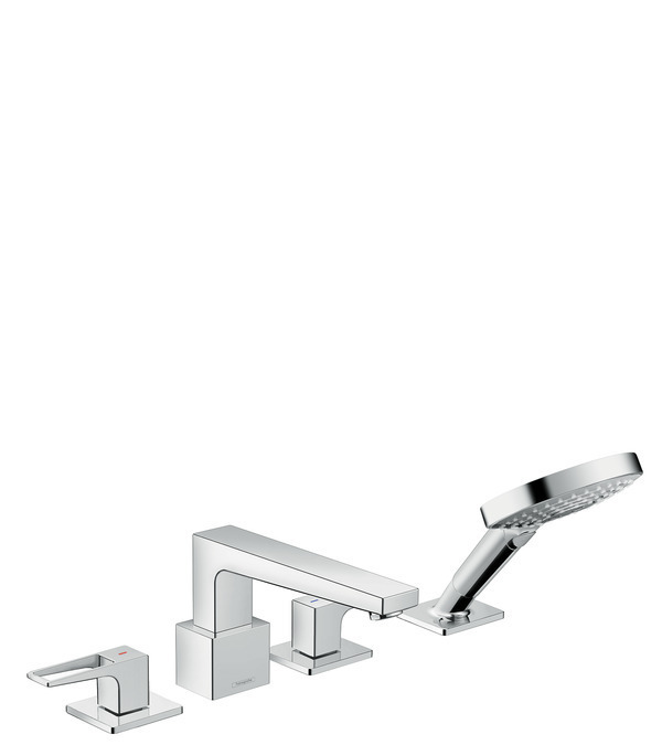 Hansgrohe Metropol Set de finition Mélangeur 4 trous pour montage sur bord de baignoire sans Secuflex, poignée étrier, chromé (74553000)