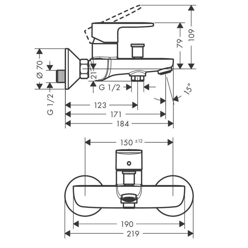 • Entraxe: 150 mm ± 12 mm