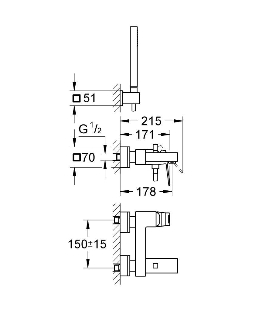 Caractéristiques du Mitigeur monocommande 1/2" bain/douche, Chrome, Grohe Eurocube (23141000) :