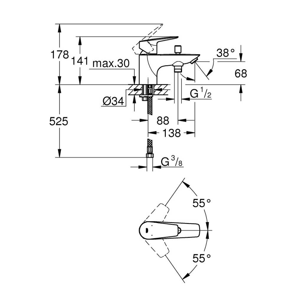 - Type de produit:Mitigeur Monocommande Bain/Douche