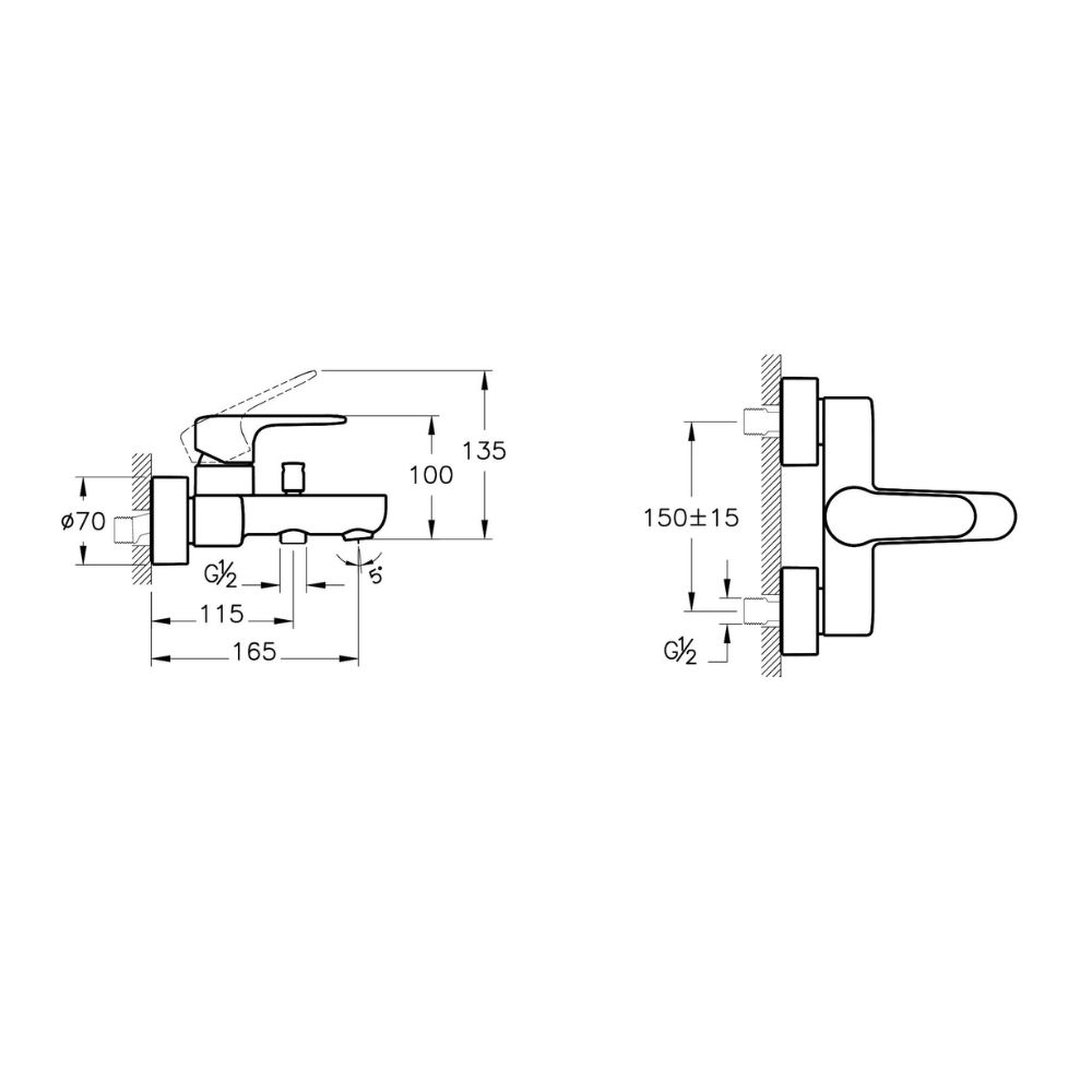 Ce modèle monocommande assure une utilisation fluide et confortable, avec une installation murale standard (entraxe 150 mm), garantissant compatibilité et simplicité de pose.
