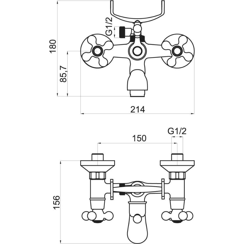 Mitigeur bain/douche à deux poignées Novaservis Titania Retro II avec set de douche – entraxe 150 mm, finition chromée (99121,0)
