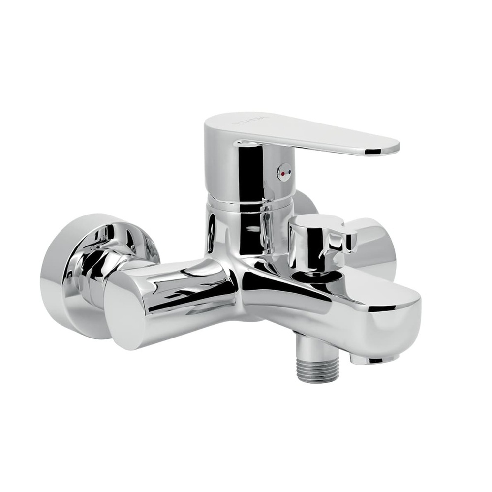 Ensemble Mural Robinet de bain sans douche. En finition chromée. Pas du robinet 100 mm. La hauteur du mitigeur est de 11,7 cm.