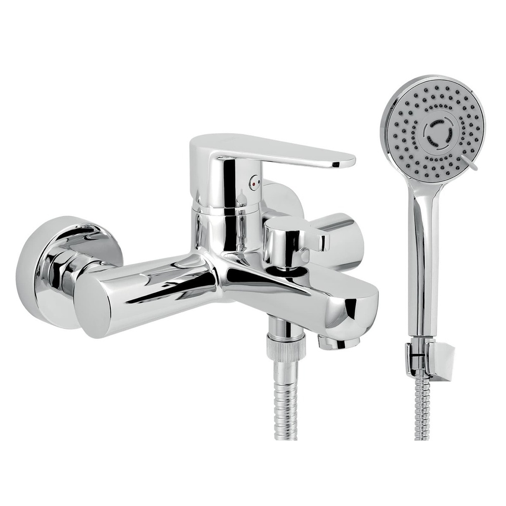 Robinet de bain mural à levier avec set de douche en finition chromée. Pas du robinet 150 Mp. En VOVO Brillant.