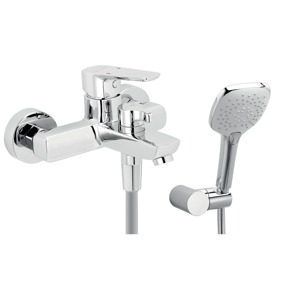 Robinet de bain mural à levier avec set de douche en finition chromée. Pas du robinet 150 Mp. En VOVO Brillant.