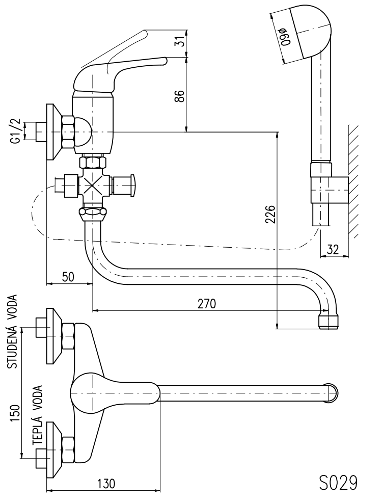 Mitigeur bain-douche mural RAV Slezák Sázava avec set de douche – 100 mm, finition chrome (SA056.0/1)