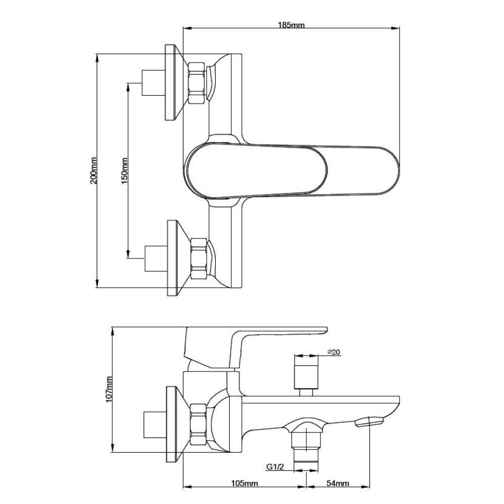 Mitigeur de baignoire SIKO Lucida mural sans set de douche 150 mm, chromé – SIKOBSLU222