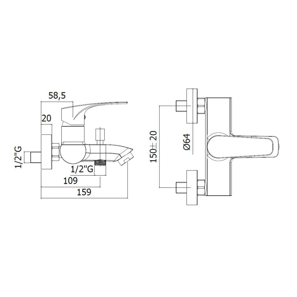 Project mitigeur de baignoire mural 150 mm, à levier, sans set de douche, noir mat (SATBSPRO222C)
