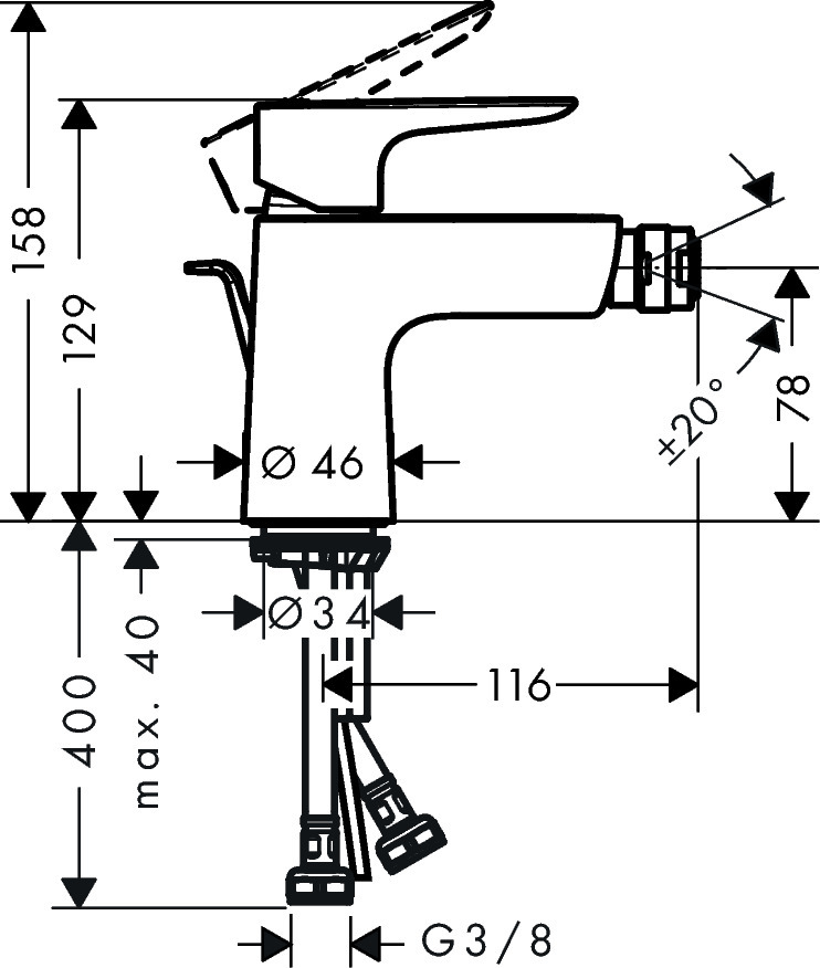 Caractéristiques du mitigeur bidet avec tirette et vidage, Aspect Doré poli Hansgrohe Talis E (71720990) :