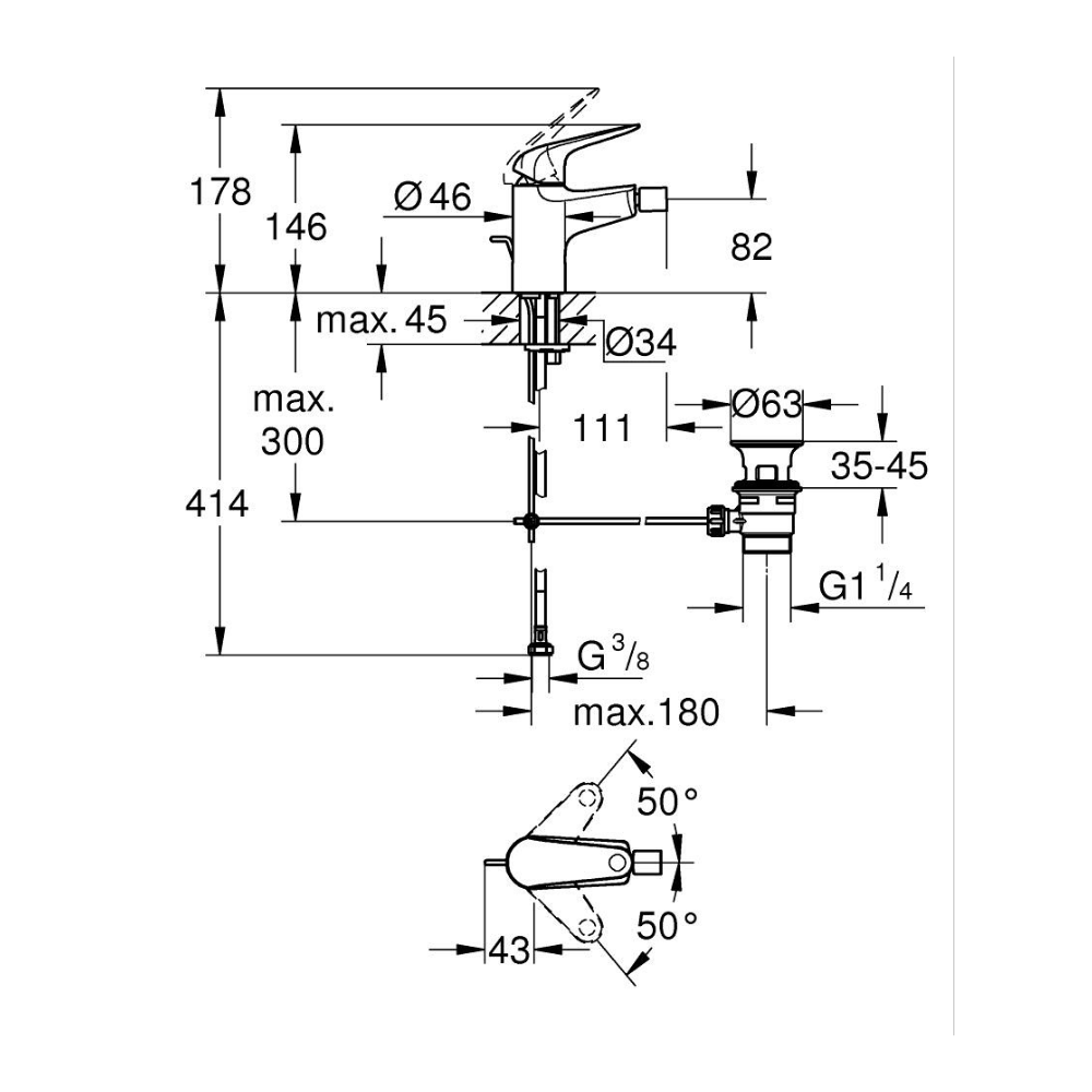 Caractéristiques du mitigeur monocommande bidet, Grohe Swift, chrome (G24332001) :
