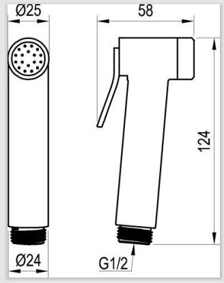 Jet de bidet Robinet de bidet incluant le Mural. Sans accessoires. Avec Kit de montage nano. Avec 1 fonction. avec diamètre 2,5 cm et longueur 12,5 cm. En design rond.