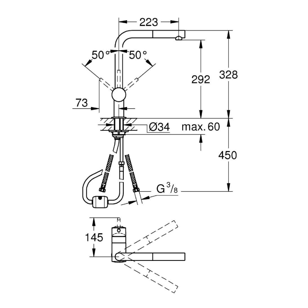 Caractéristiques du Mitigeur de cuisine Minta avec rotation 360° et douchette, Chrome, Grohe Minta (32168000) :